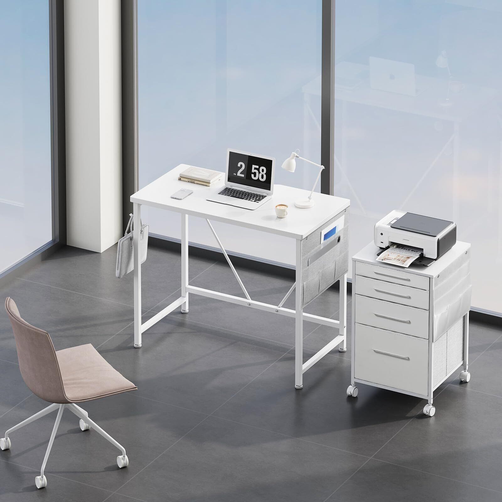 デスク 机 pcデスク 勉強机 幅80cm パソコンデスク 収納袋付き学習机 小さい つくえ 作業机 在宅 組立簡単 テレワーク 白い