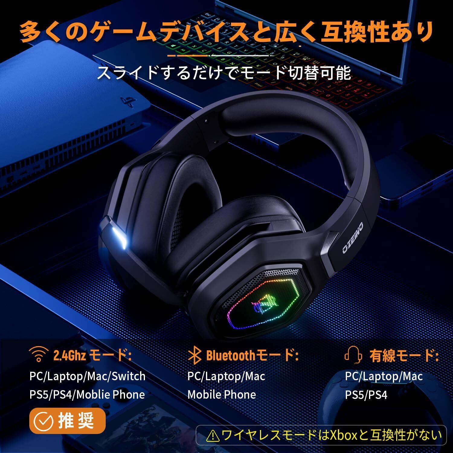 ゲーミングヘッドセット ゲーミングヘッドホン 3-in-1ワイヤレス 【5.3 Bluetooth/USB-A/USB-C】7.1ch 軽量 30時間連続使用 <25ms超低遅延 RGBライトヘッドセット マイク付き Ps5 Ps4 PC Switch対応 スマートフォン OW810黒 無線