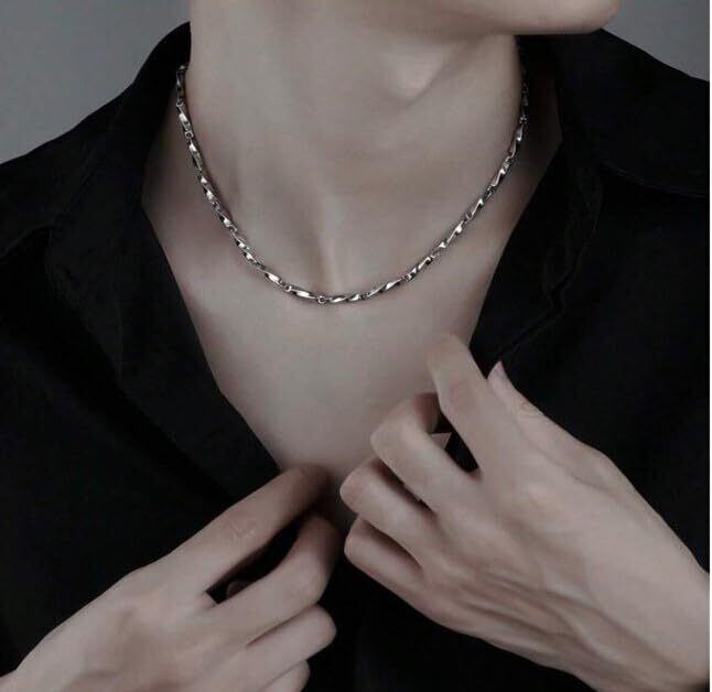 [Bel cuore] ネックレス メンズ カットチェーン ネックレス チタン鋼 切子 シルバーカラー #Bel-257