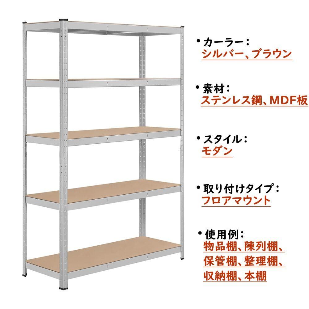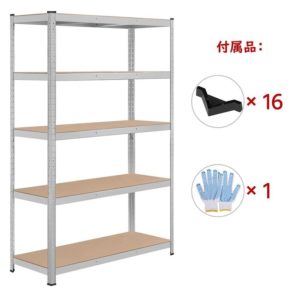 Yaheetech キッチンラック スチールラック 120x45x180cm 5段 メタルラック ステンレスラック オープンシェルフ 収納棚 収納ラック 幅120 耐荷重875kg 高さ調節可 防サビ加工 ネジなし 組立簡単 キッチン 物置 倉庫 ガレージ ゴム製キャップ付き 手袋付き シルバー | hananoki