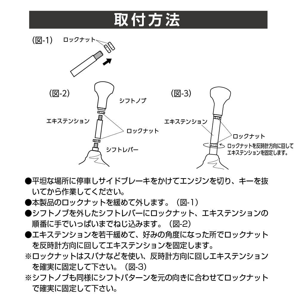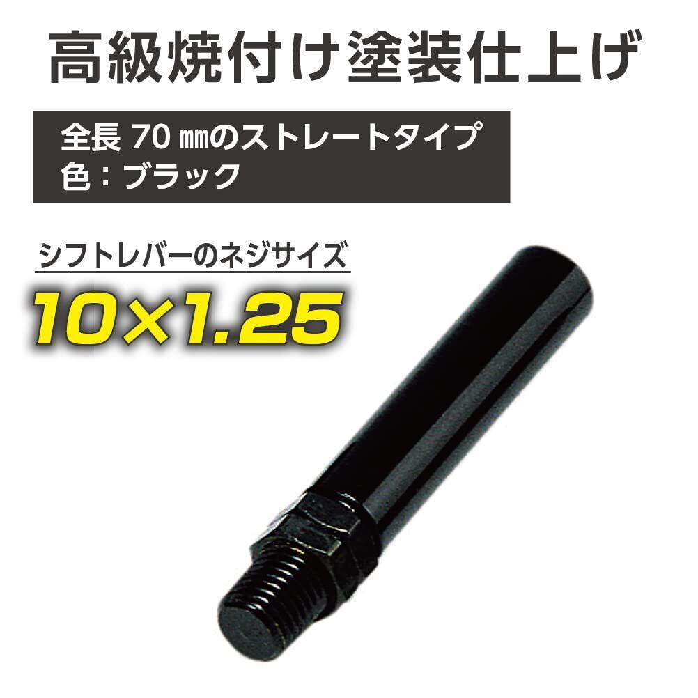 最適なシフトポジションにカスタマイズ。高級焼付け塗装仕上げ。全長70mmのストレートタイプ。シフトレバーのネジサイズ10×1.25