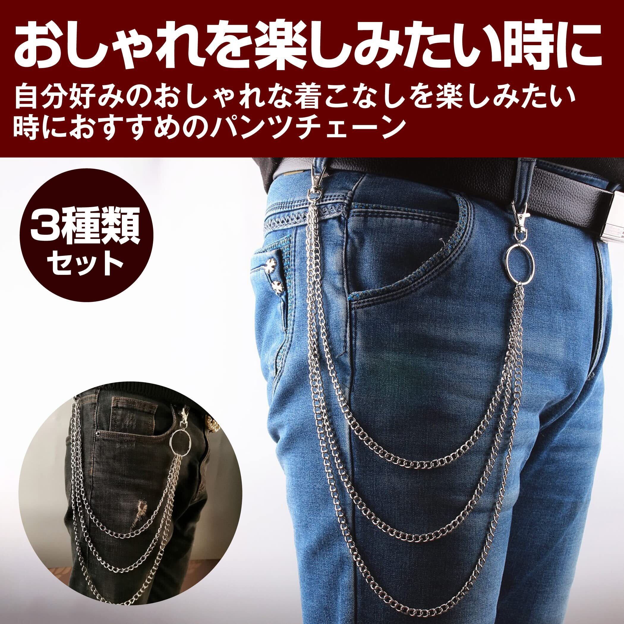 [HAMILO] パンツチェーン ファッション 1連 2連 3連 ジーンズ 3種セット