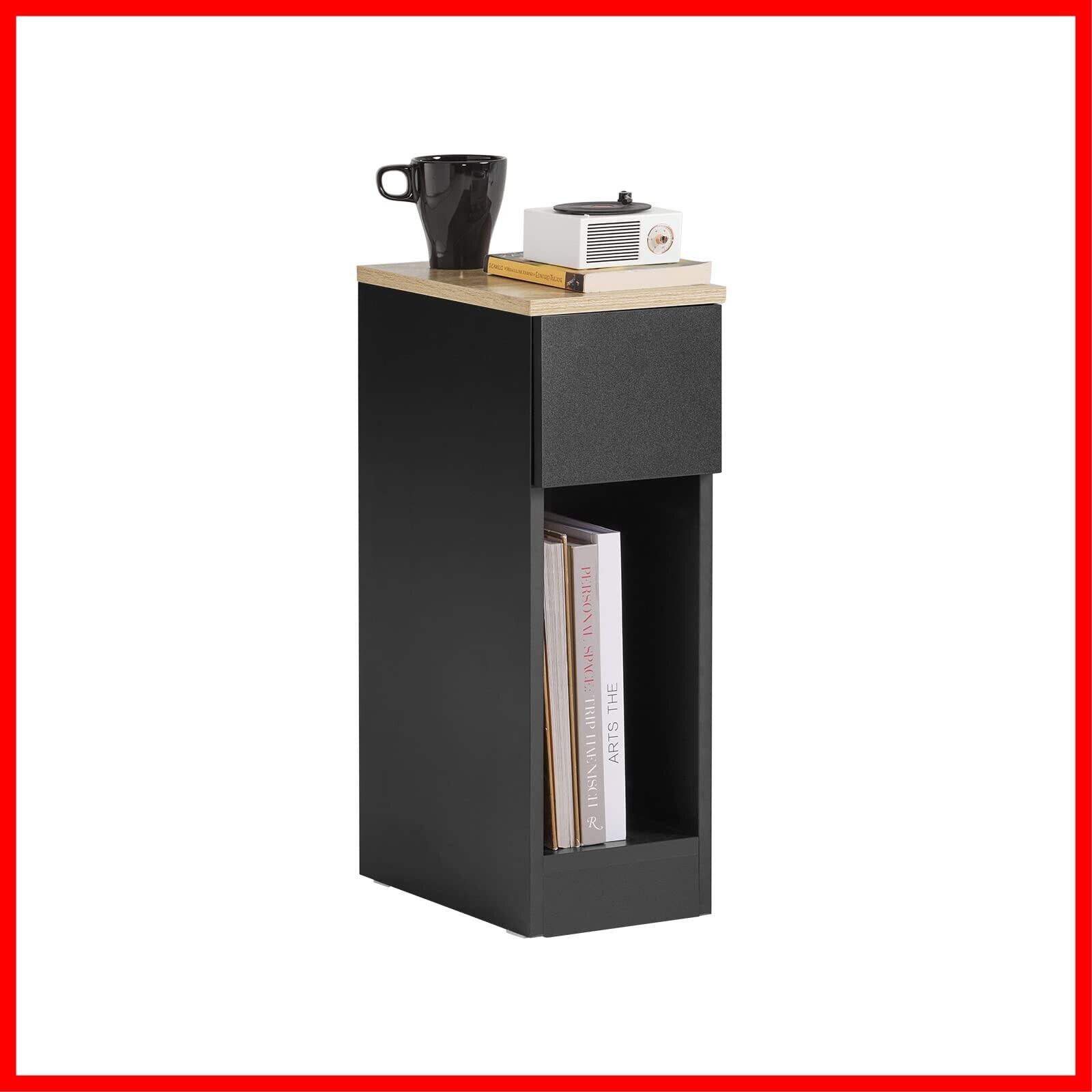 SoBuy ベッドサイドテーブル ナイトテーブル スリム サイドテーブル 奥行き35x 幅20x高さ60cm 省スペース オシャレ 引き出し付き 北欧風 ソファー サイドチェスト 寝室 リビング サイドボード ベッド横テーブル(FBT111-SCH/ブラック) | hananoki