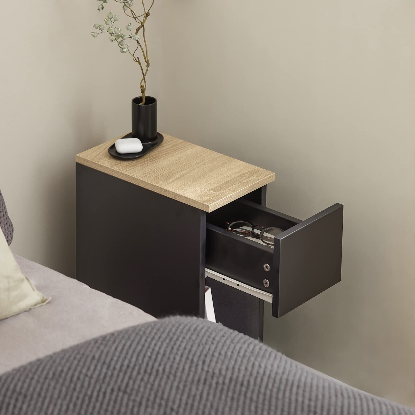 SoBuy ベッドサイドテーブル ナイトテーブル スリム サイドテーブル 奥行き35x 幅20x高さ60cm 省スペース オシャレ 引き出し付き 北欧風 ソファー サイドチェスト 寝室 リビング サイドボード ベッド横テーブル(FBT111-SCH/ブラック)