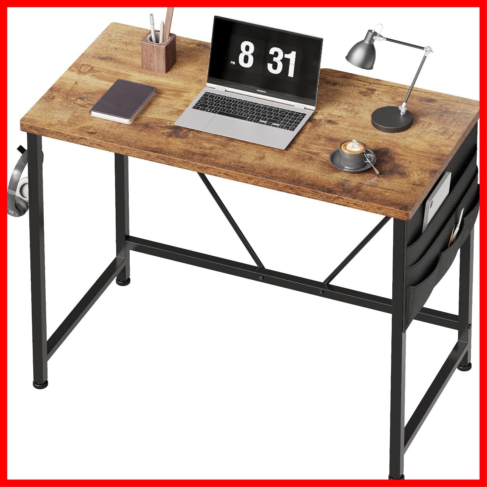デスク 机 パソコンデスク 机 pcデスク つくえ 幅80*奥行40cm シンプル 収納袋付き勉強机 フック付き学習机 モニターアーム取付対応 組立簡単 テレワーク ビンテージ