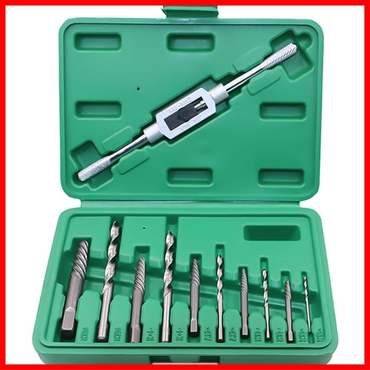 happykau 潰れた ネジ 外し エキストラクター 11点セット ボルト抜き 逆タップ エキストラクター工具 セット 折れたボルトや タップハンドル ドリル 付き ボルト抜き 逆タップ 工具 セット