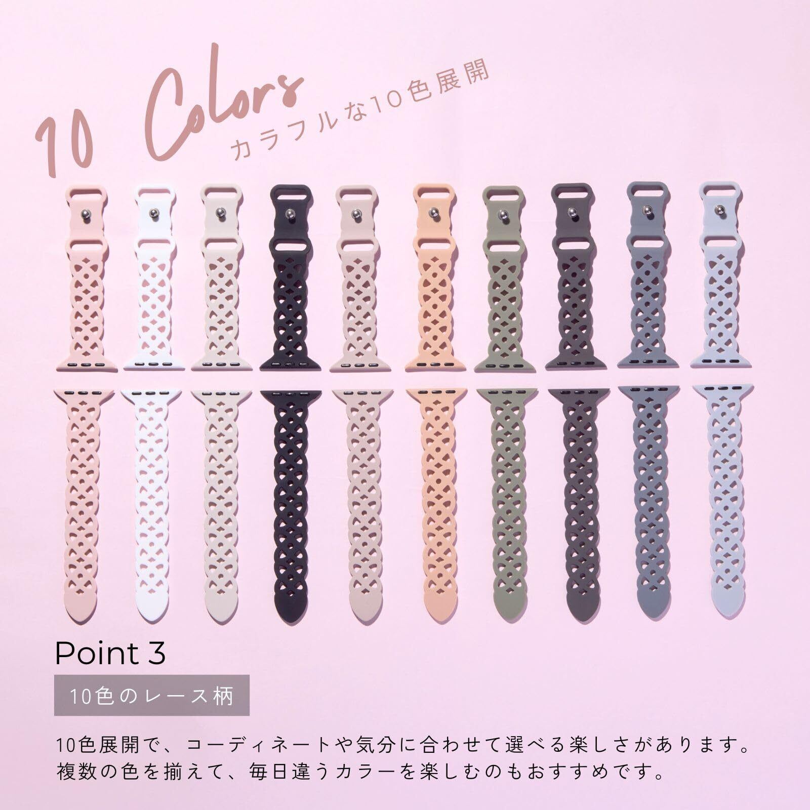 [AriRi] アップルウォッチ バンド レース柄 ラバー シリコン ベルト 38mm 40mm 41mm 42mm/10のみアップルウォッチ 10 9 se 8 7 5 4