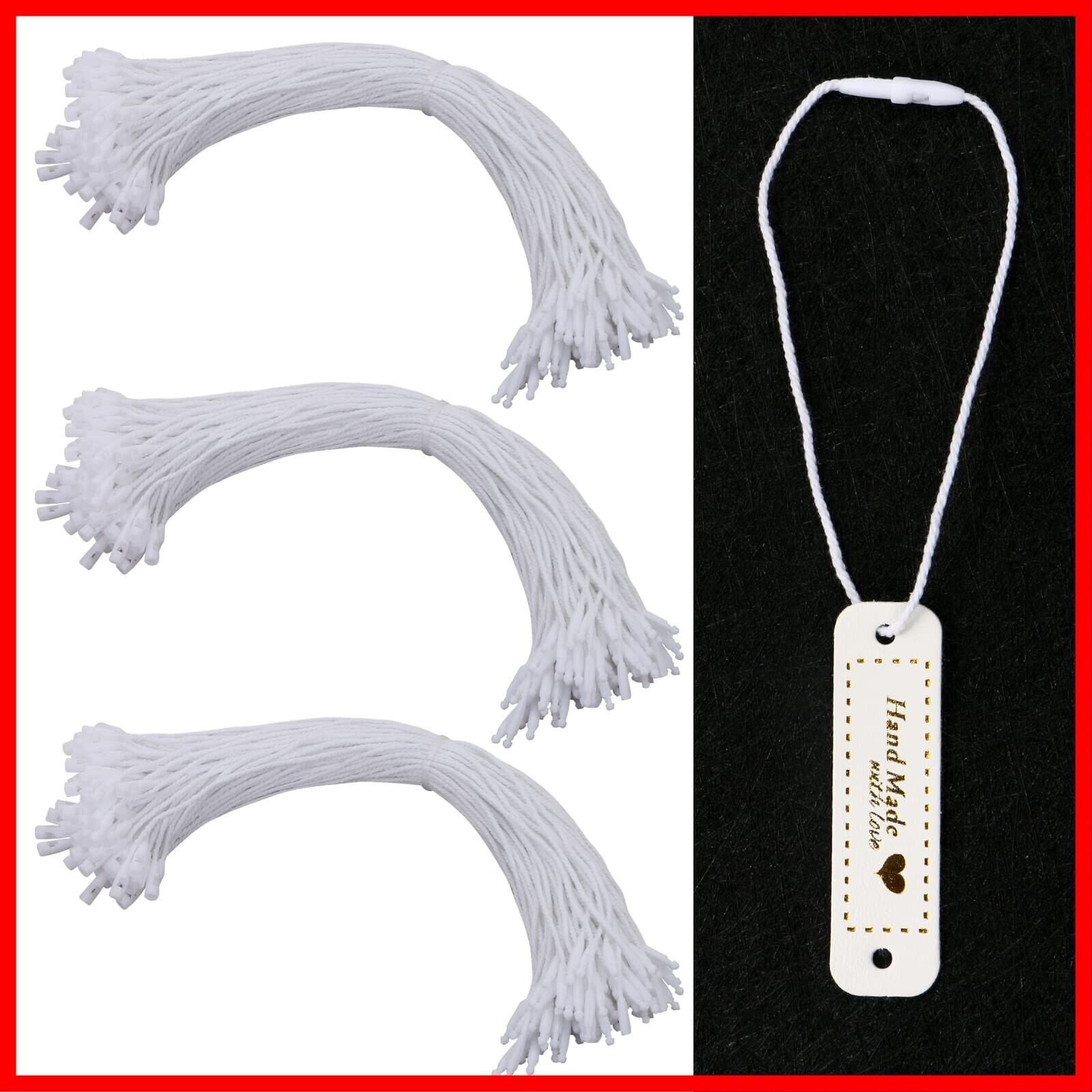 タグ紐 棉 タグファスナー ブランドタグ つづりひも 棉 タグ糸 糸ループ 業務用タグ紐 ループロック ロック式 店舗 洋服 衣類 値札 300本セット (ホワイト)