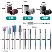 セット内容: サンディングスリーブネイルカッター75個、ネイルカッターアタッチメント10個、2.35mmネイルドリルビット1個。