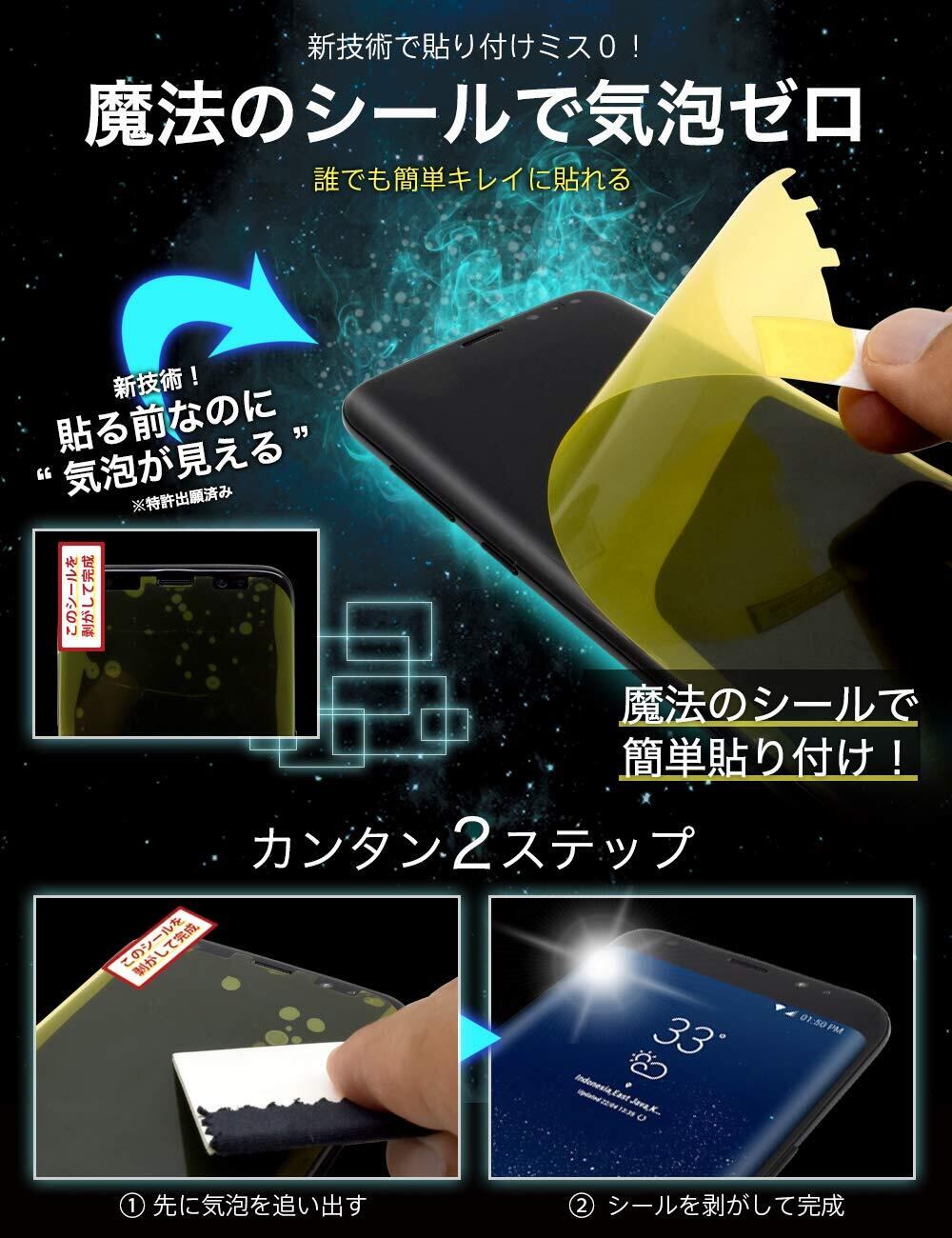Galaxy S10 用 SC-03L用 SCV41用 フィルム ~ 湾曲まで覆える 4D 全面保護 ギャラクシー S10 用 保護フィルム 薄さNo.1 ~ 貼ったら消える魔法のフィルム 気泡ゼロ 2枚セット 極薄0.08mm 究極のすべすべ感 超・衝撃吸収 位置ズレ0シール, 魔法のシール付き | hananoki
