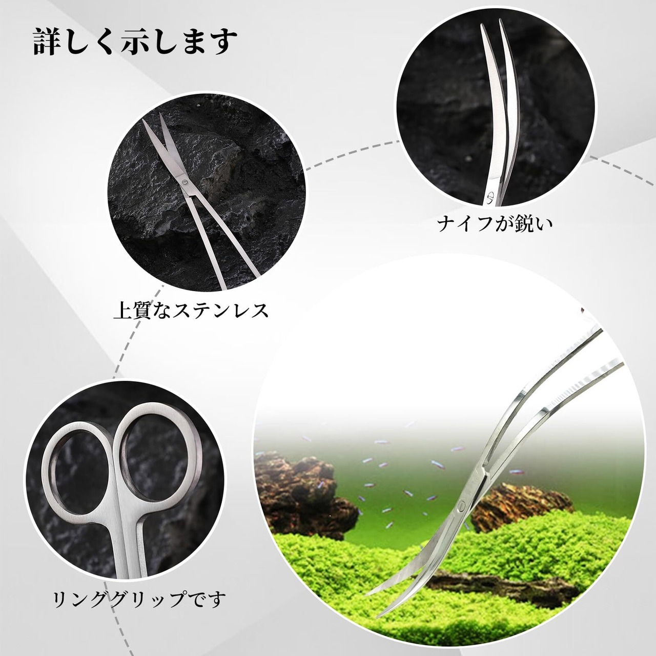 【高品質】:水草トリミングハサミの表面は手作業で磨かれ、滑らかな質感と快適なグリップを備えています。柔軟性に優れ、錆びにくいステンレス素材を使用しています。