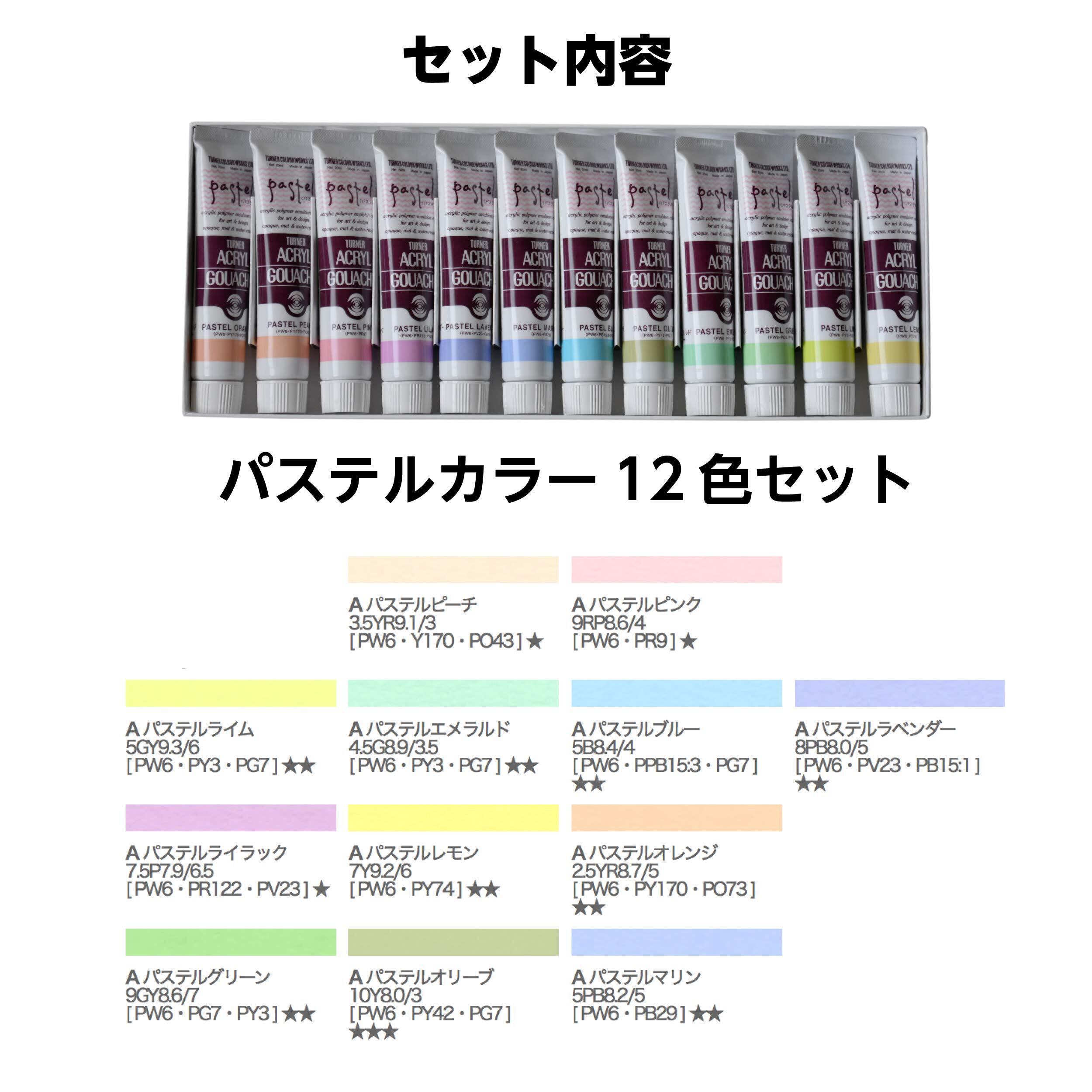 【 限定】ターナー色彩(Turner Color) アクリルガッシュ パステルカラー12色セット AG02012P 20ML(6号)