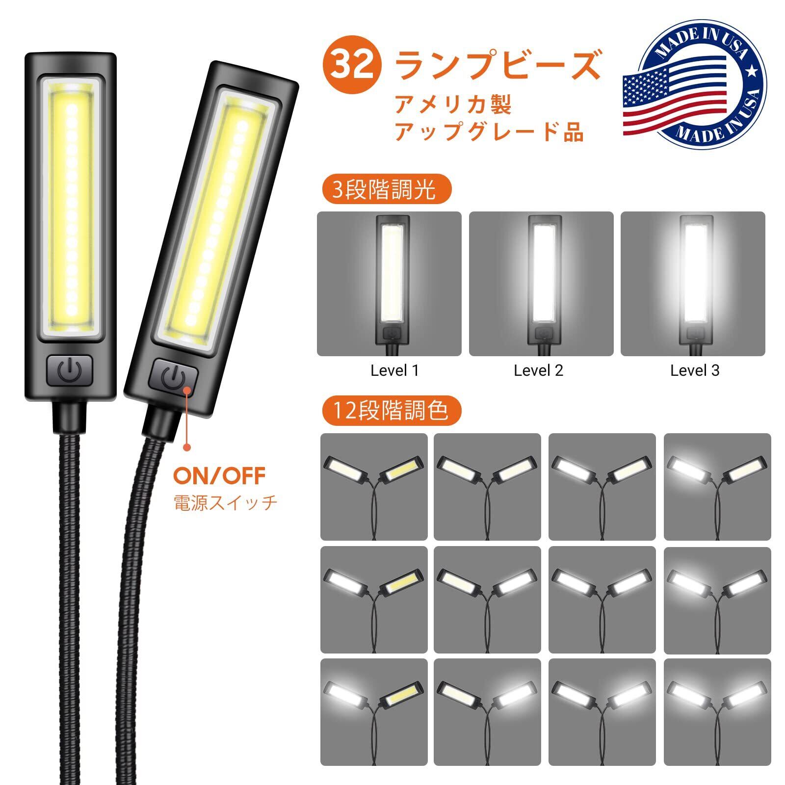 CAHAYA クリップライト 譜面台ライト 2.5M USBケーブル付き 電気スタンド 32 発光ダイオード アメリカ製 3階段調光 12階段調色 360°回転調整可能 軽量150g 折りたたみ ポケットに入れ ギター 譜面灯 読書灯 ベッドサイド 懐中電灯 ピアノ用 エフェクターボード用 グースネックタイプ CY0243