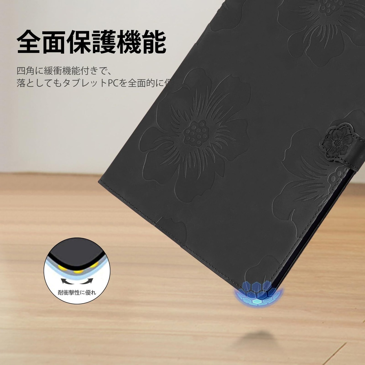 CASAFUNY iPad 11世代/10世代 ケース iPad(A16)11インチ 2025/10.9インチ 2022通用 カバー シンプル 高級PU合成レザー 二つ折り スタンド スマートカバー Apple Pencil 収納可能 オートスリープ機能付き かわいい 美しい桜柄 保護カバー(くろい) | hananoki
