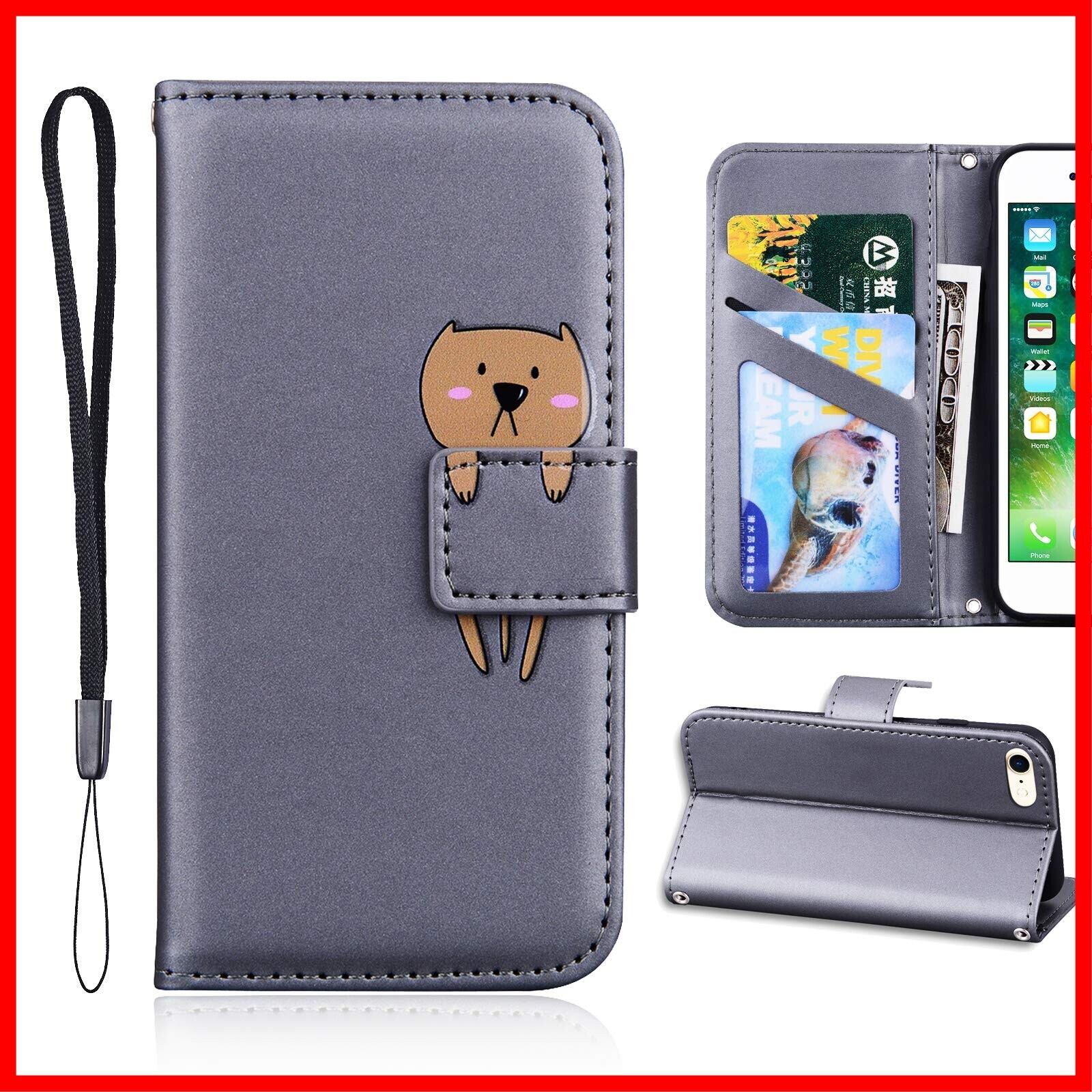 [iPhone ケース 第3世代 iPhone SE2 /8/7 ケース手帳型 iPhone 8 手帳 iPhone7 ケース 手帳型 アイフォン se2 カバー スマホケース 携帯カバー レザー 耐衝撃TPU 財布型 カード収納 ストラップ付き 傷つけ防止 スタンド機能 動物型 イヌ (iPhone8/iPhone7/se2/se3対応) グレー]