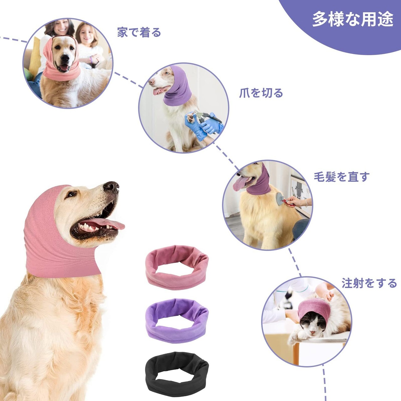 犬のスヌード 犬猫の耳カバー 騒音防止 ペットスヌード 不安の快適さ かわいい 猫用スヌード 犬用スヌード おしゃれ ペットの耳暖かい (S, 黒)