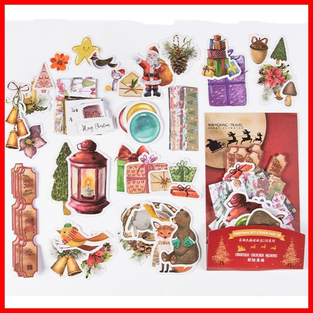 100枚 シール フレークシール コラージュ 素材 ペーパー 素材紙 レースユートピアステッカーレトロキラキラクリスマス 海外 韓国 シール帳,メモ用紙ノート素材、日記装飾用品 (caihuishengdan)