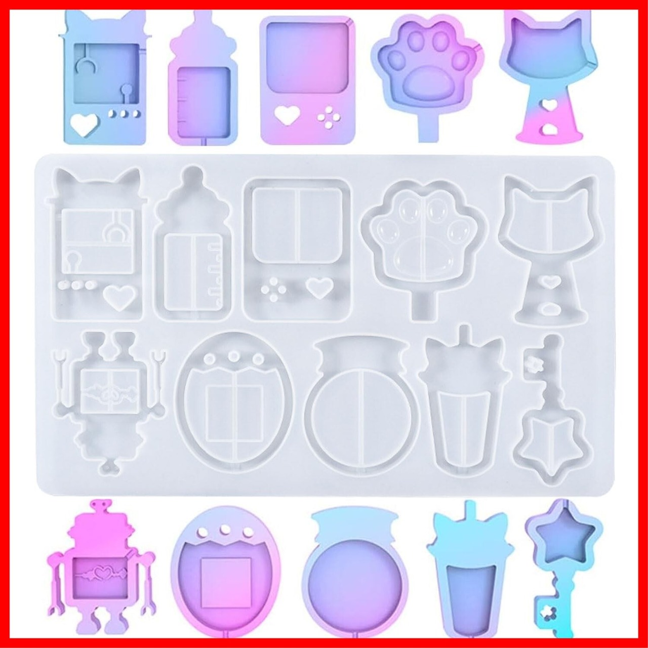 レジン シリコンモールド レジン 型 10種類 樹脂金型 流砂金型 ロボット内部ロッキング ゲーム機 哺乳瓶 UFO キャッチ 猫耳 かわいい ペンダント アクセサリー 装飾 ファッション ギフト | hananoki