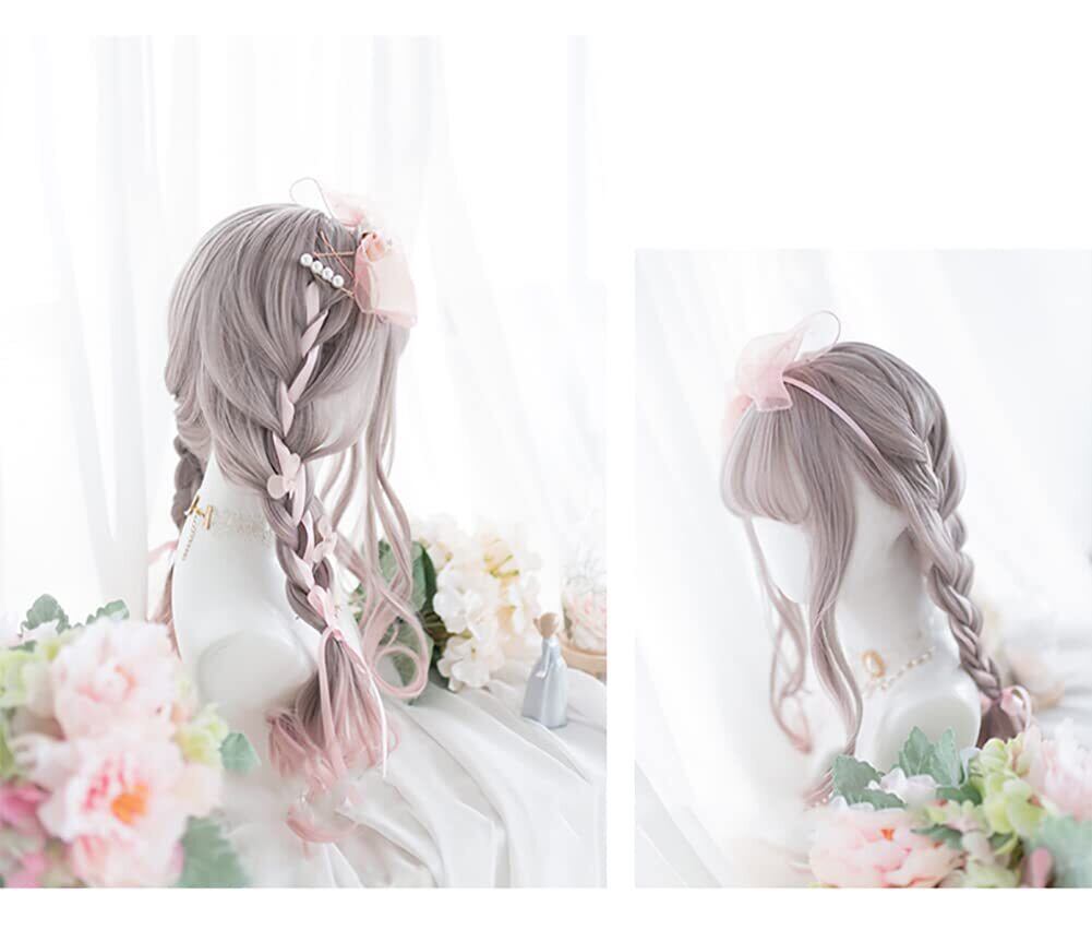 [原宿風 GAL系 耐熱ウィッグ かつら カール ロング 巻き髪 グラデーション ウィッグ ロリータウィッグ パーティー ロリータlolita風 日常 コスプレ 小顔効果 (グレー ピンク)]