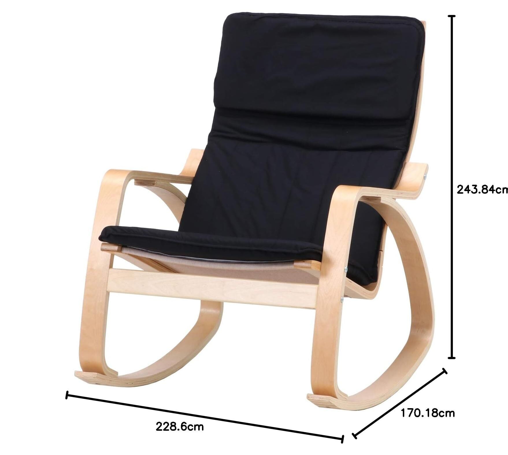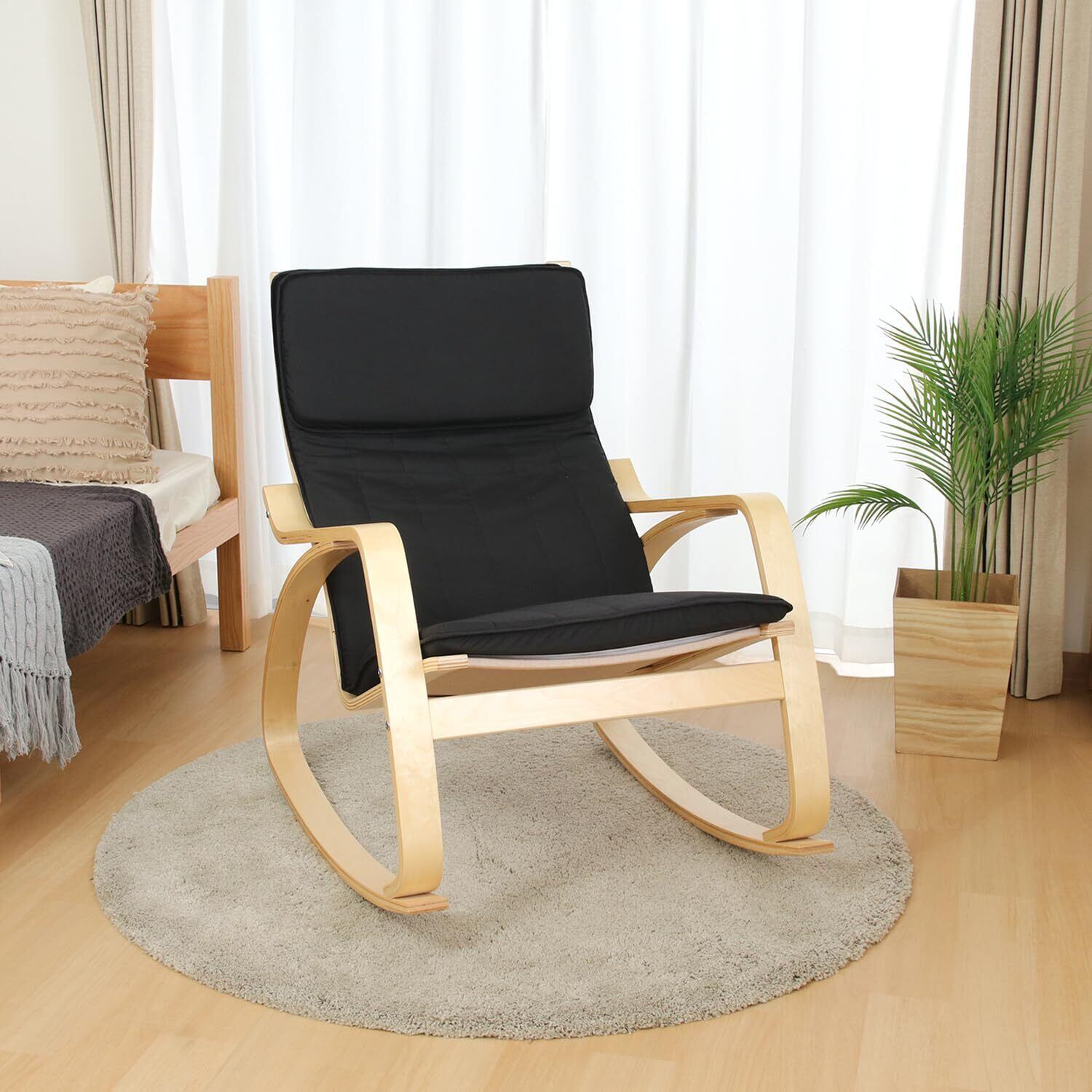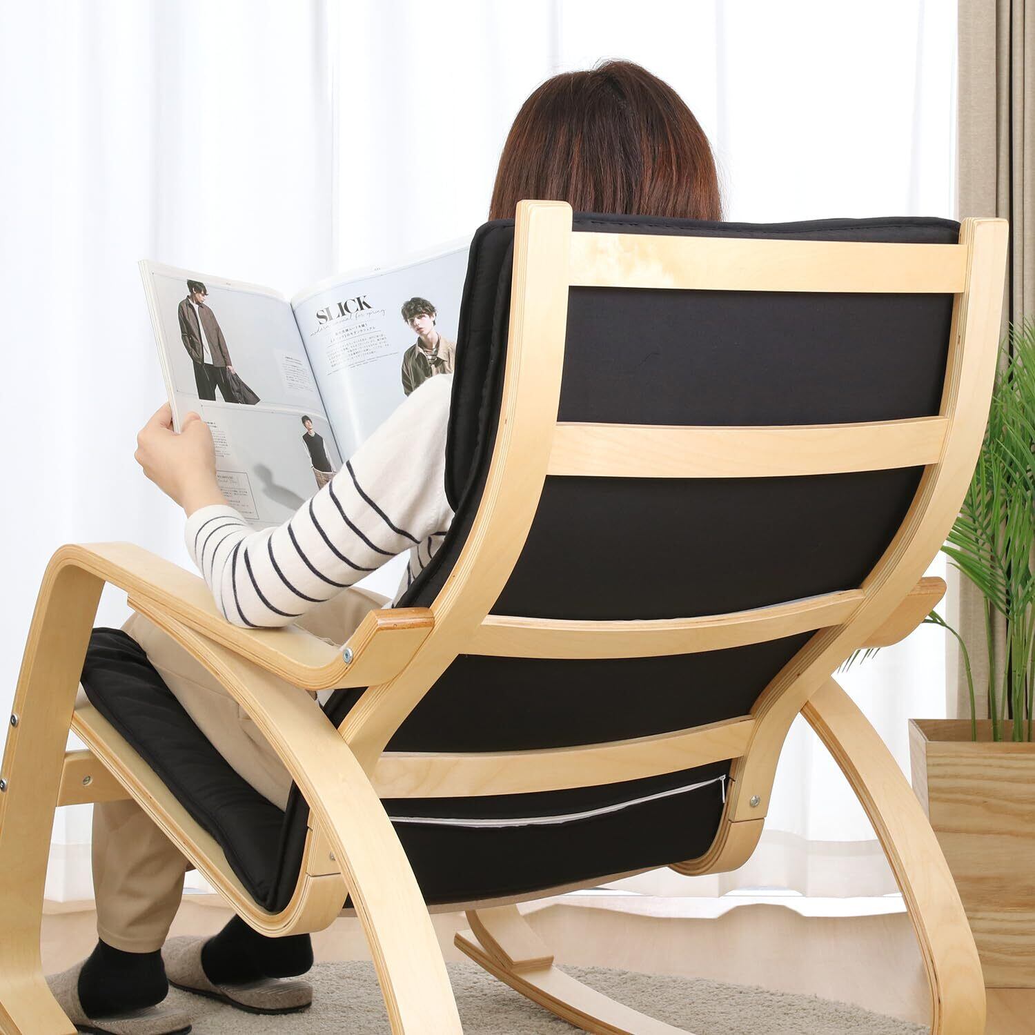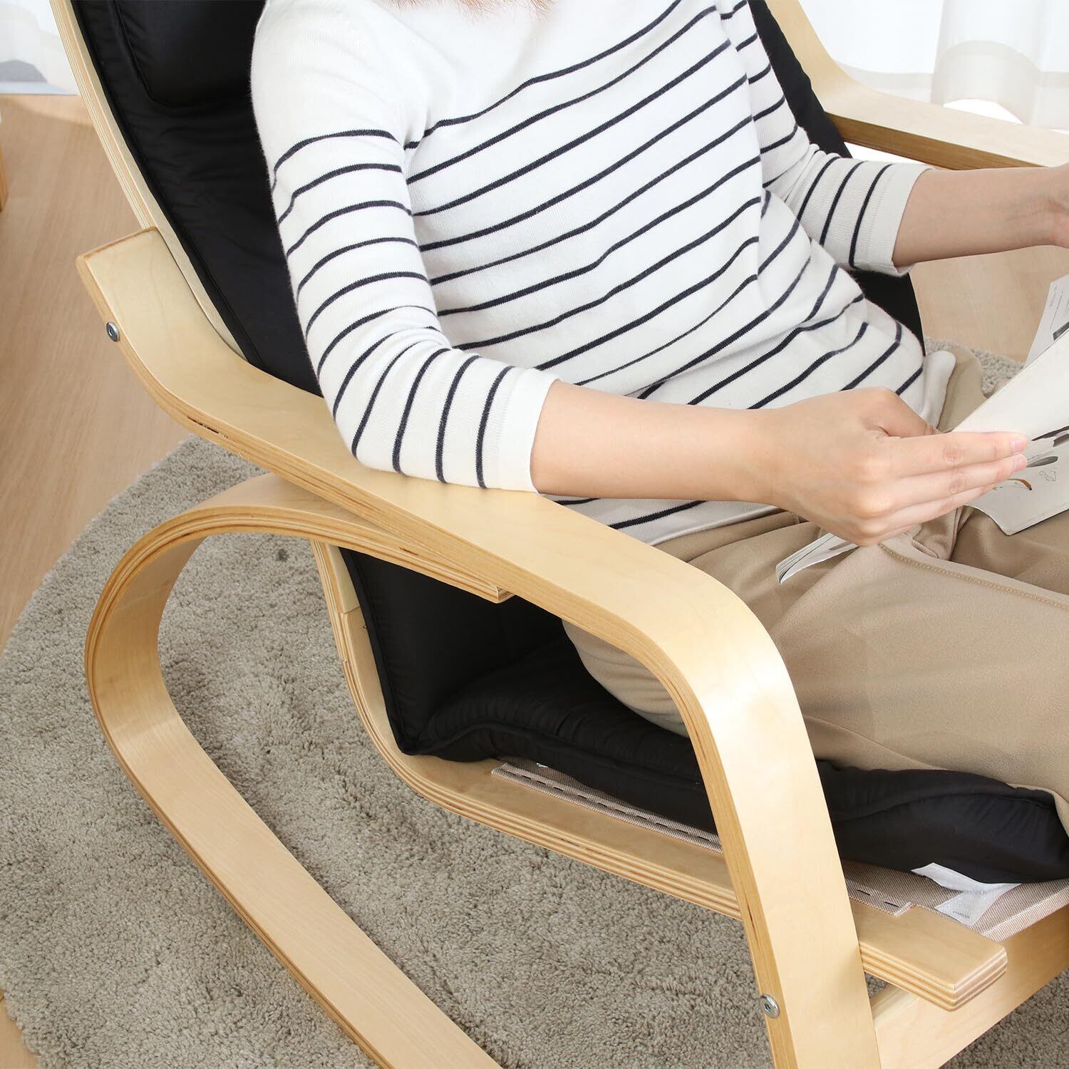 不二貿易 リラックスチェア ロッキングチェア 1人掛け 幅67×奥行96×高さ90cm ブラック 木製 曲木 組立商品 一人掛けソファ スリム 40815