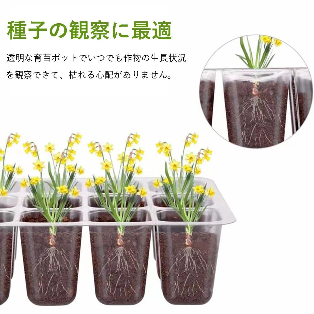 【第二世代育苗ポット】育苗ポット透明カバーは一般品より3cmぐらい高くし、多くの種の発芽や成長条件合わせる。高品質のPETで作られた透明なプラスチックシェルは、高硬度、高靭性で作られた苗ボウルは、洗浄して再利用できます。圧力に耐え、効果的に種子を栽培する厚みのある下端を備えています。私たちの驚くべき植木鉢は、移植ショックを事実上排除し、根の循環や損傷を引き起こすことなく植物を移植するのに理想的です。