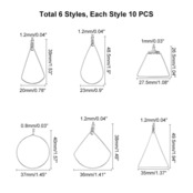 サイズ&内容:長さ:26.5~49.5mm、幅:20~38mm、厚さ:0.6~1.5mm、6種類;10個/毎種;60個入り;色:ステンレス色;あなたの想像力でこれらのワイングラスチャームをDIYのファッションアクセサリーに使うことができます!