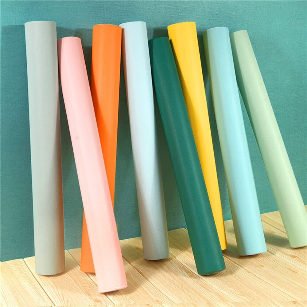 【無地リメイクシート】壁シールは厚さが約0.28mmで貼りやすく、初心者も簡単に貼り付けるタイプです。シンプルなマカロン色ながらも存在感があっておしゃれです。壁用のリフォームシートとしてはもちろん、家具(本棚、ワードローブ、テーブルやデスクなど)も自由にDIYしてリフォームできます。