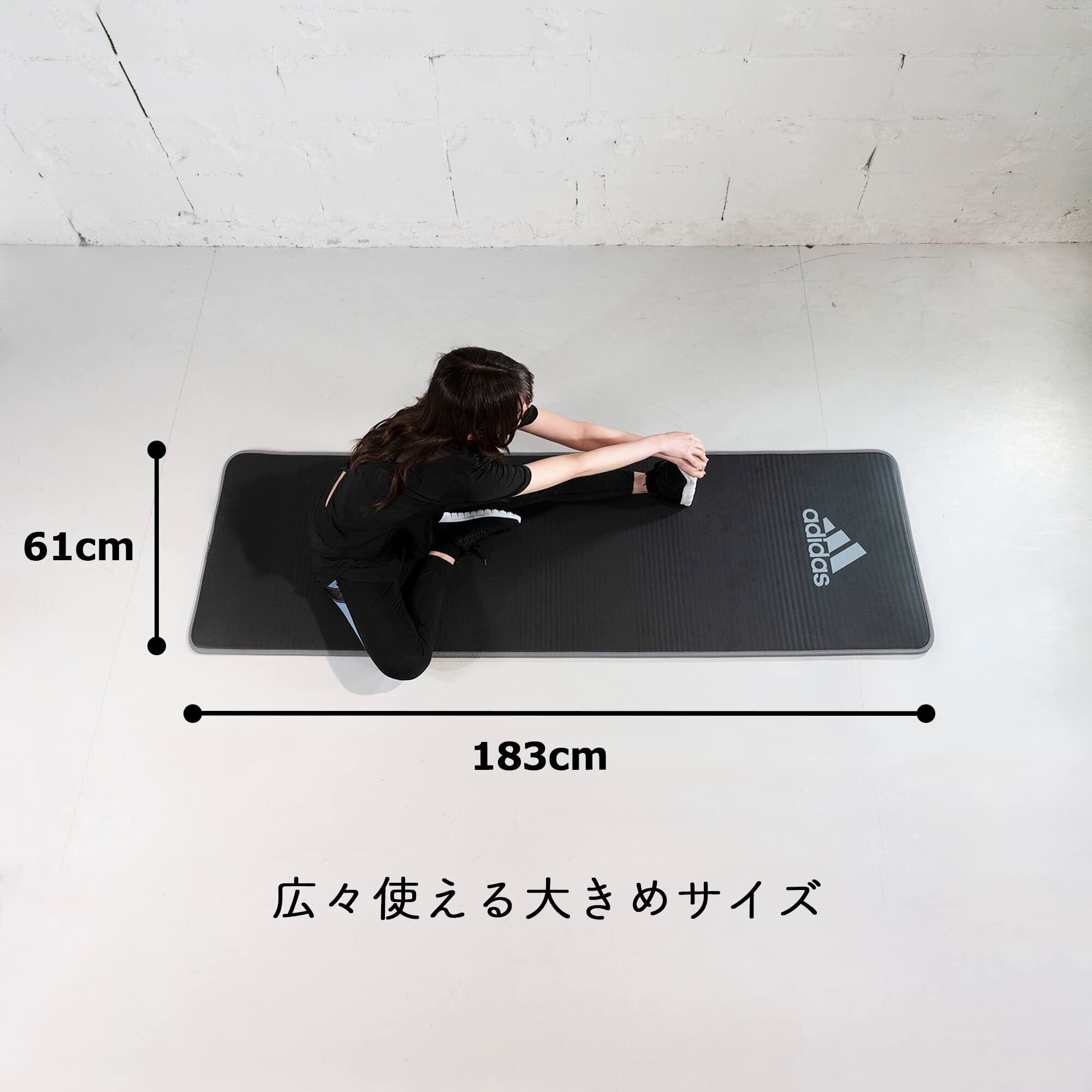 adidas(アディダス) トレーニングマット/フィットネス/ヨガ 10mm 厚め 幅広 耐久性 滑り止め キャリーストラップ付き ADMT-12235