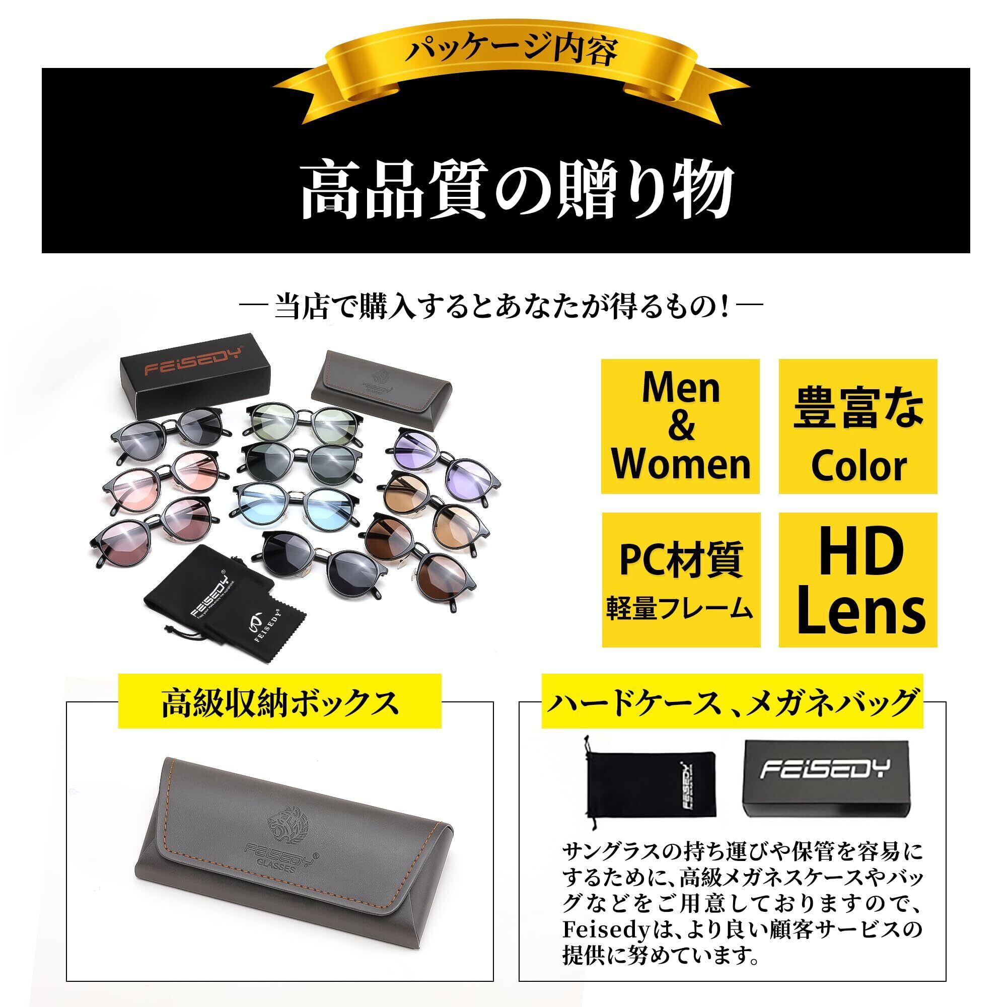 [FEISEDY] サングラス レディース メンズ UV400 紫外線カット 丸型 おしゃれ 軽量 カラーレンズ 運転 通勤 旅行 ファッション ユニセックス 知的 ボストン B1172