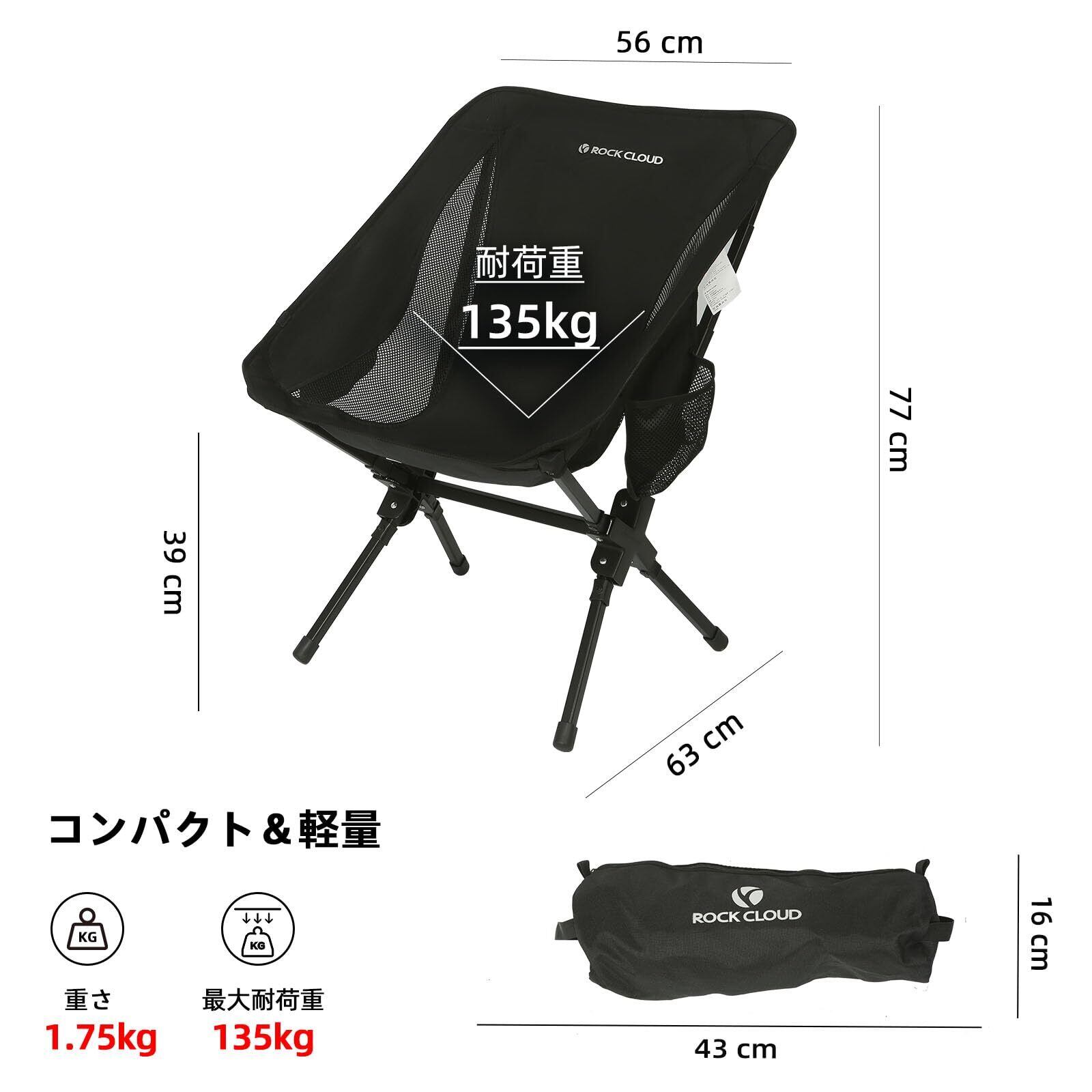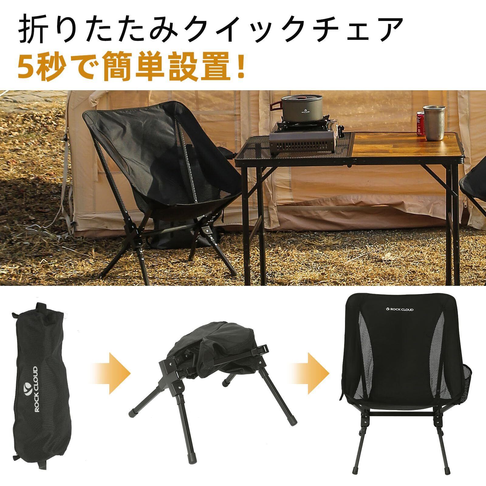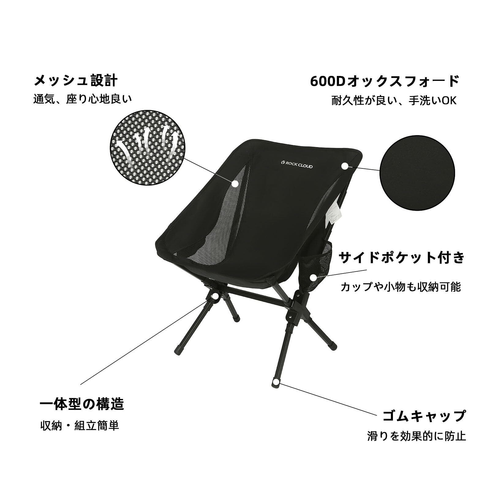 ROCK CLOUD アウトドアチェア 一体型 折りたたみ キャンプ 椅子 軽量 コンパクト イス 組み立て不要 お釣り 登山 ハイキング 携帯便利 収納袋付き