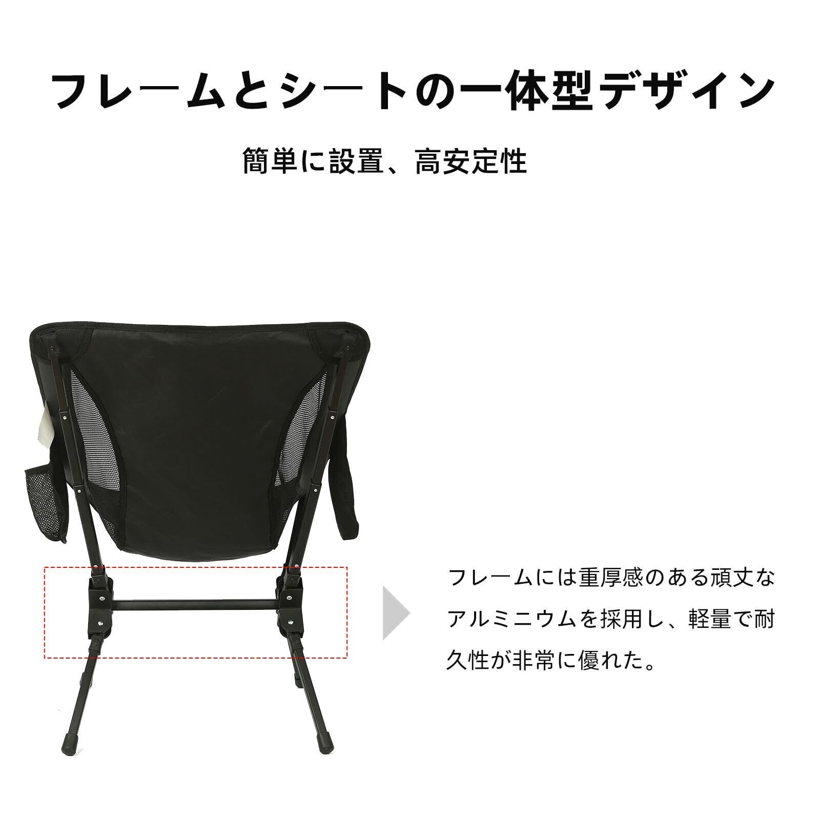 【わずか5秒で組み立て!】2024年最新のフレームとシートの一体デザイン、従来のキャンプチェアより面倒な設置が一切不要で、展開と收納が非常に簡単、慣れれば5秒で出来ます。
