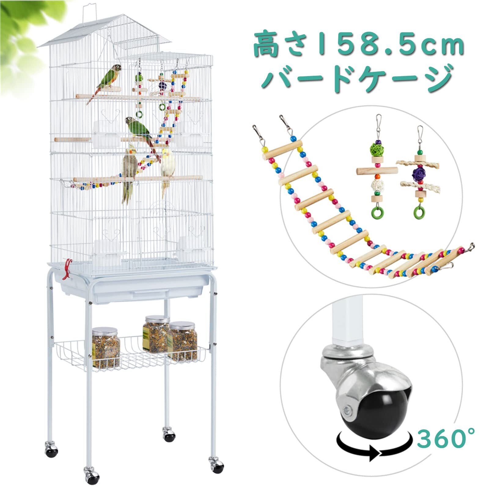 Yaheetech 鳥かご 鳥ケージ スタンドあり 46x35.5x158.5cm 大型 高強度 豪華 大きい 鳥小屋 ブランコあり フルハウス ペット用品 おもちゃ セキセイインコ インコ オウムケージ オカメ コガネメキシコ コザクラ マメルリハ ウロコ アキクサ ホワイト