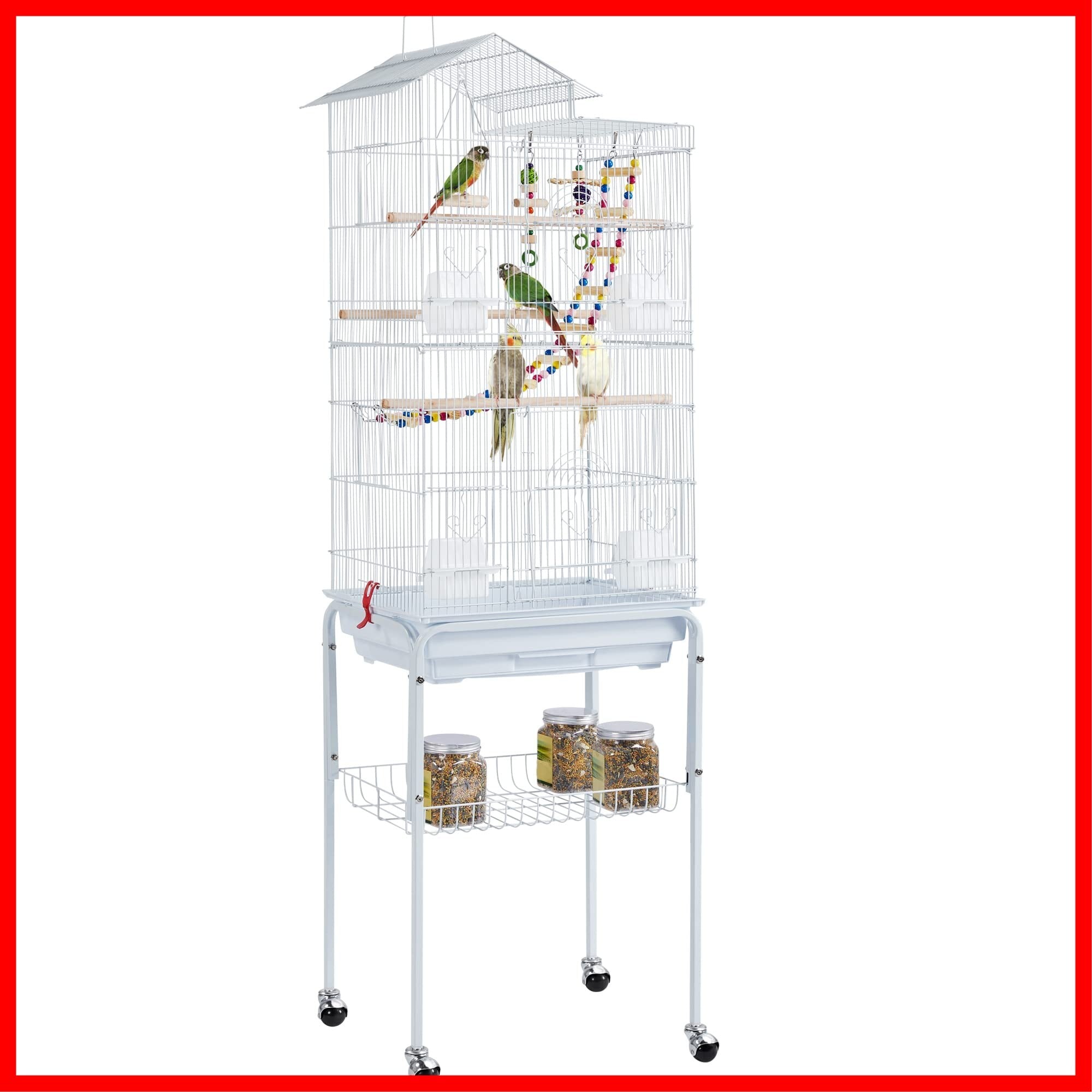 Yaheetech 鳥かご 鳥ケージ スタンドあり 46x35.5x158.5cm 大型 高強度 豪華 大きい 鳥小屋 ブランコあり フルハウス ペット用品 おもちゃ セキセイインコ インコ オウムケージ オカメ コガネメキシコ コザクラ マメルリハ ウロコ アキクサ ホワイト | hananoki