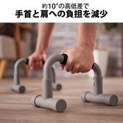 前後で高低差があるグリップバーで、手首と肩の負担を軽減し、より効果的にトレーニングすることができます。