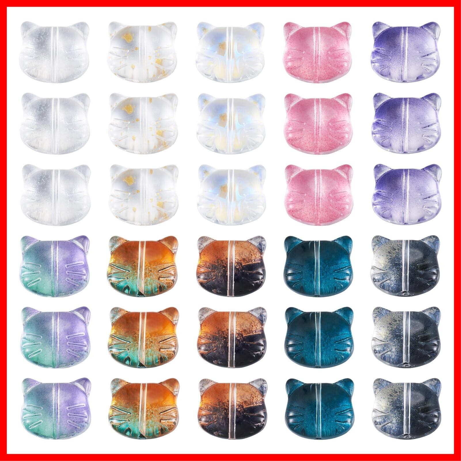 Beadthoven 約50個 カラー透明 猫 ガラスビーズ ネコ ペット かわいい スペーサービーズ チャームビーズ 動物 アクセサリーパーツ ジュエリー用 DIY ハンドメイド ピアス ブレスレット 手芸材料 手作り素材 クラフト用品 12.5x14x6.5mm