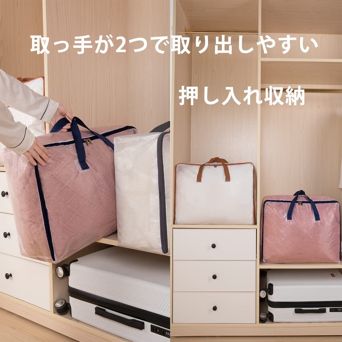 布団収納袋 ふとん 収納袋 大容量 (XXL-2個セット)布団袋 引っ越し ぬいぐるみ 衣類 洋服 収納ボックス 収納ケース ダークブルー 持ち手とファスナー付き 强荷重:50KG 透明 押入れ収納袋 70x50x30cm