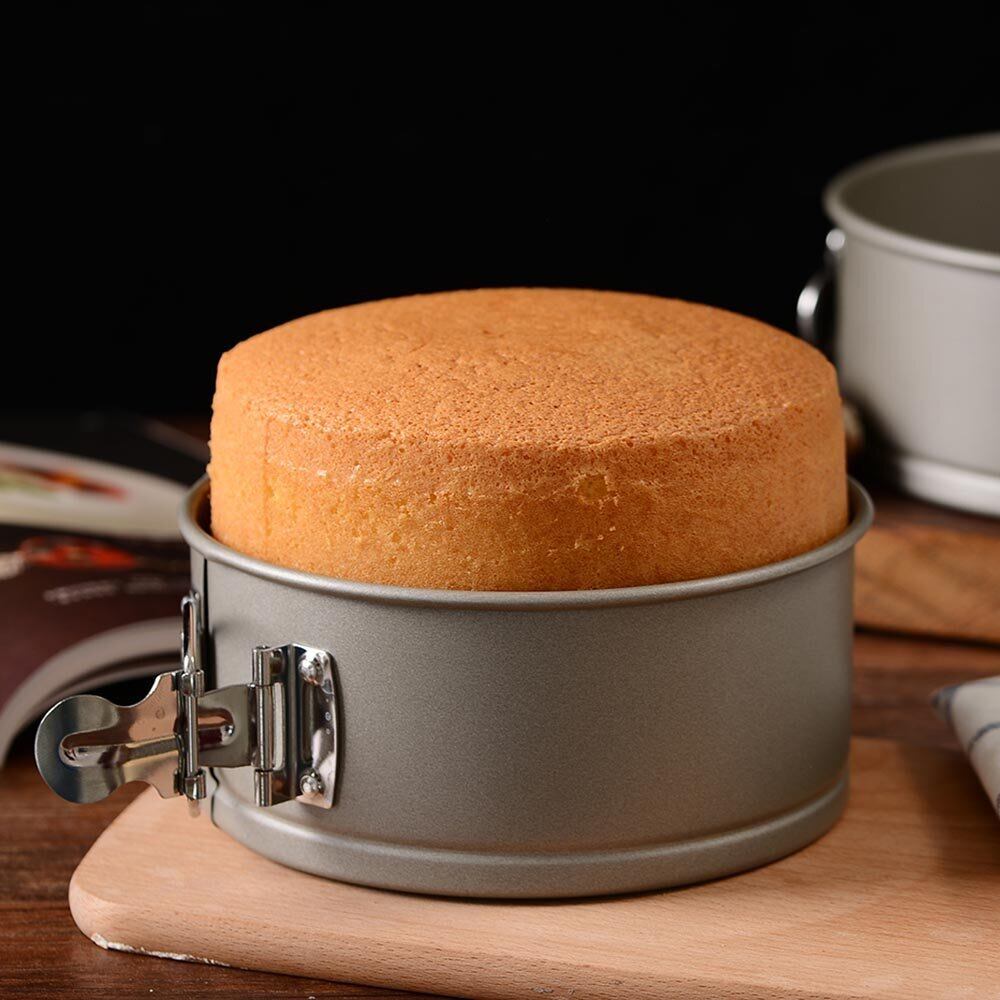 底が外れるタイプで且つ、側面がバネ式で緩めることができるので、焼きあがった後に型から取り外すのに便利です