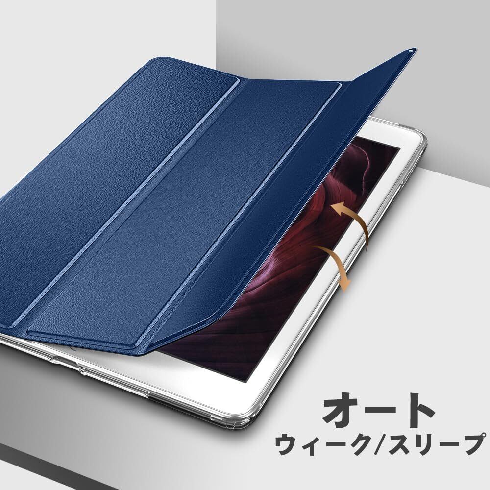 iPad 10.2 ケース 2021 MoKo iPad 9 ケース 第9世代/第8世代/第7世代 iPad 10.2インチ 2021/2020/2019モデル カバー 半透明 軽量 薄型 スタンド仕様 オートスリープ機能 高級PUレザー 底面TPU製 ソフト 耐久性 便利 スマートケース NavyBlue