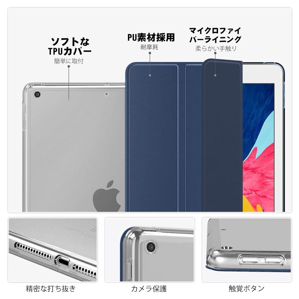 iPad 10.2 ケース 2021 MoKo iPad 9 ケース 第9世代/第8世代/第7世代 iPad 10.2インチ 2021/2020/2019モデル カバー 半透明 軽量 薄型 スタンド仕様 オートスリープ機能 高級PUレザー 底面TPU製 ソフト 耐久性 便利 スマートケース NavyBlue | hananoki