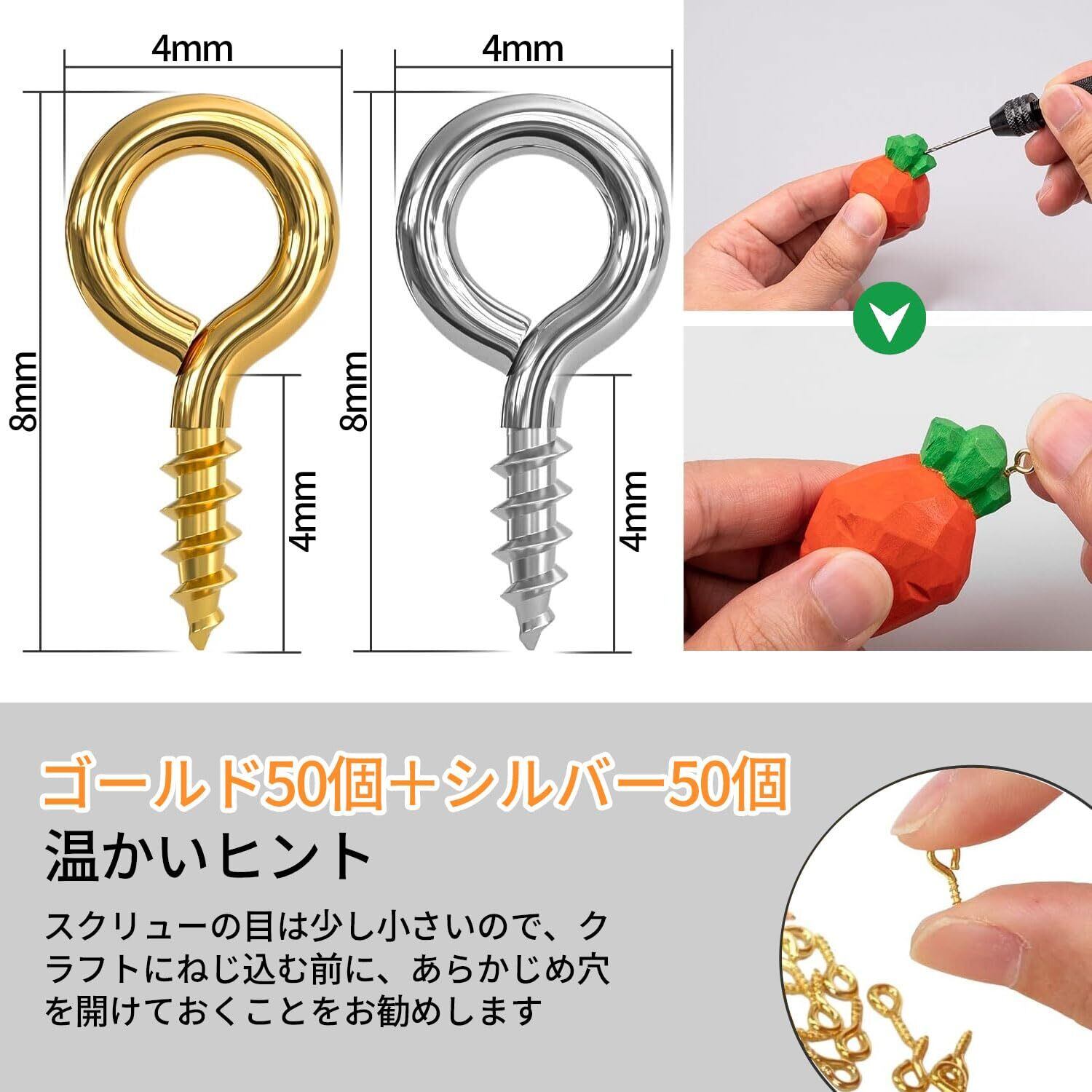 【豊富なセット内容】4×8mmのサイズで、ちょうど良い大きさのネジヒートンは、どんな材料にもスムーズに取り付け可能。自由な発想で、多彩な作品を簡単に作成できます!