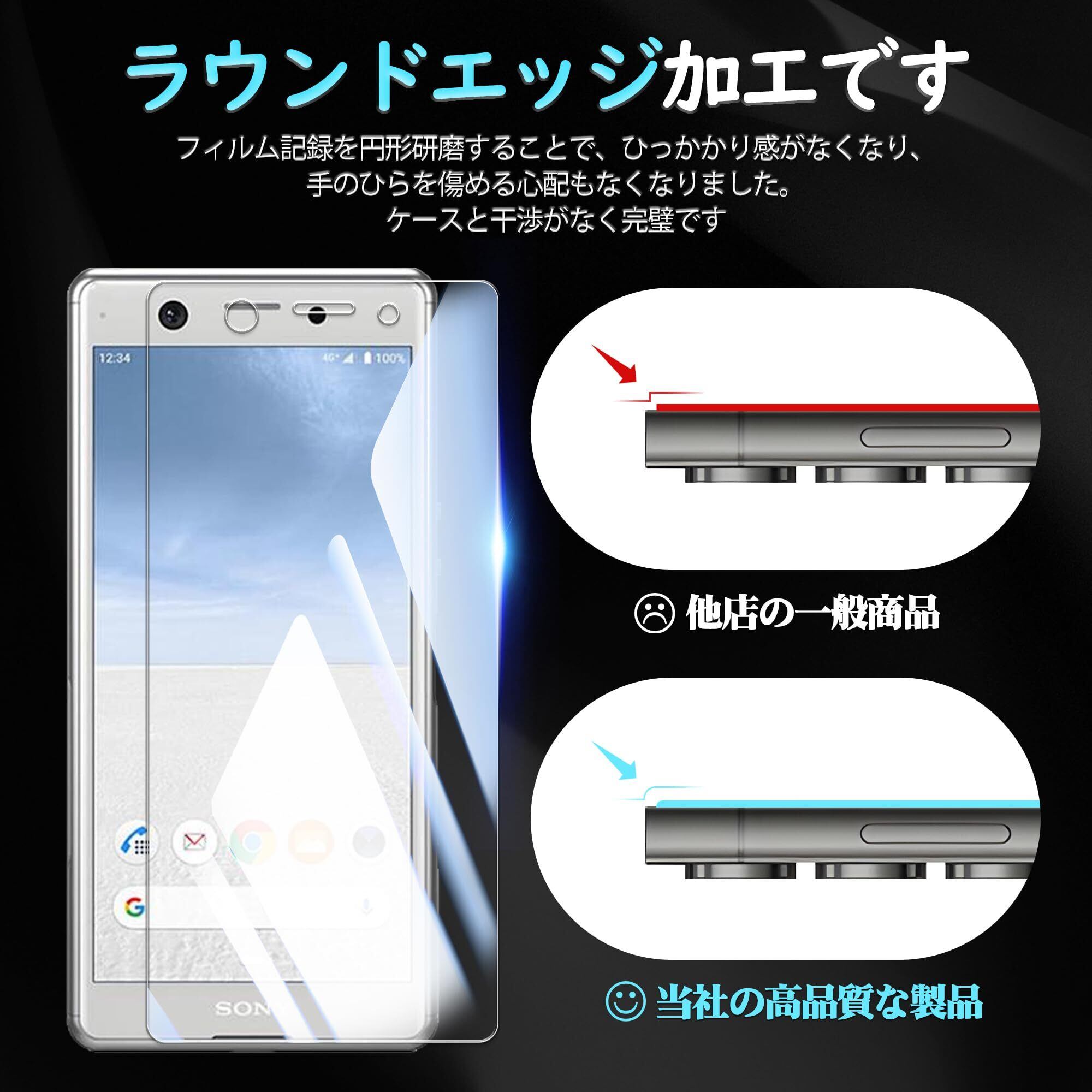 【対応機種】:Xperia Ace SO-02L 専用 ガラスフィルム。【注意】この電話の画面の端は湾曲しているため、保護フィルムのサイズが丁度良い場合、しっかりと貼り付けられず、白いエッジやシェルとの干渉などの問題があるため、保護フィルムは画面よりも小さいです。
