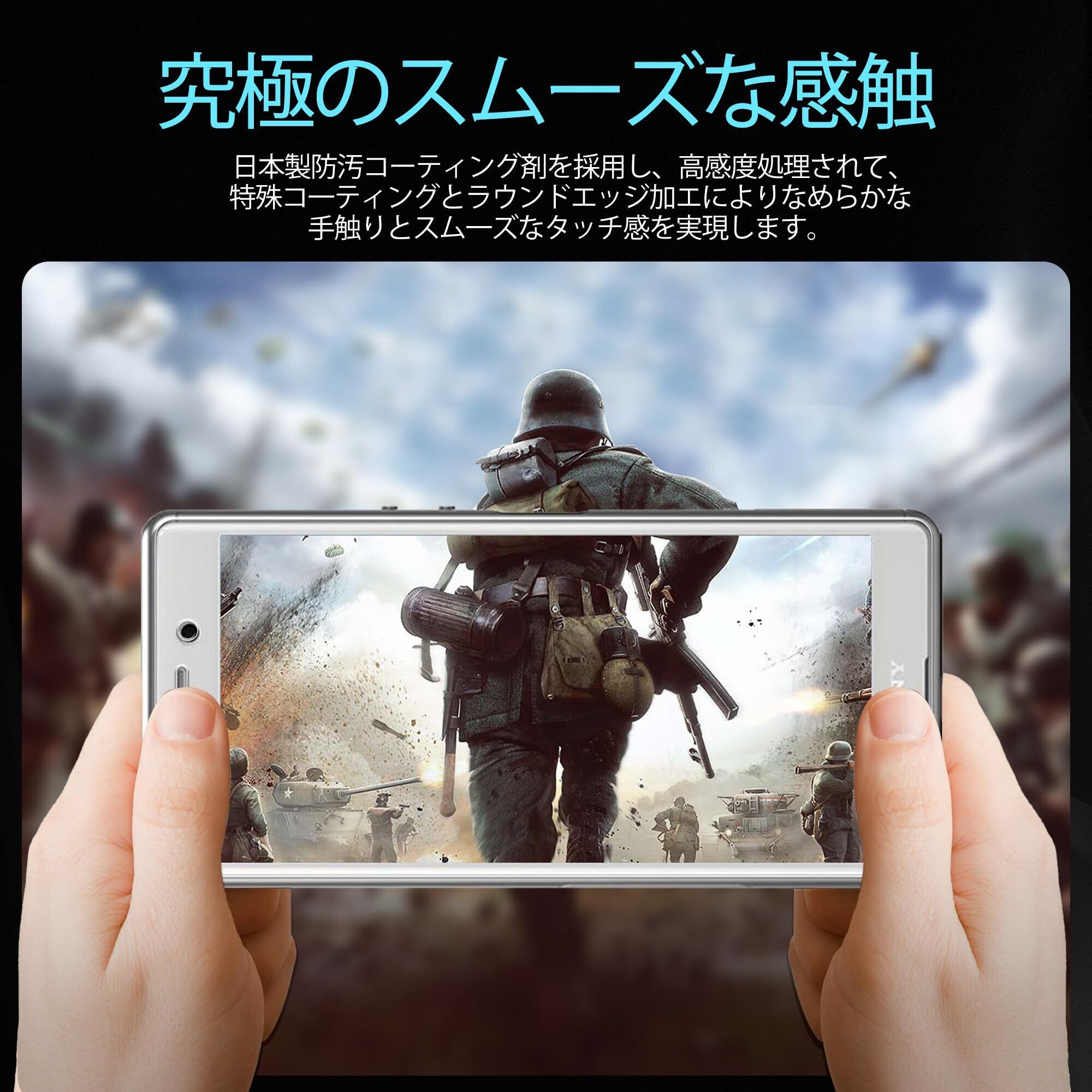 【指紋防止、高感度タッチ】ガラスフィルムには撥油コーティングが施されており、指紋や汚れなどに強くなめらかな操作感を実現、付着した汚れなどは簡単に拭きとれます。こちらは高耐久撥油コーティングが施され、つるつるな滑り感を実現!ゲームしても渋くなし!