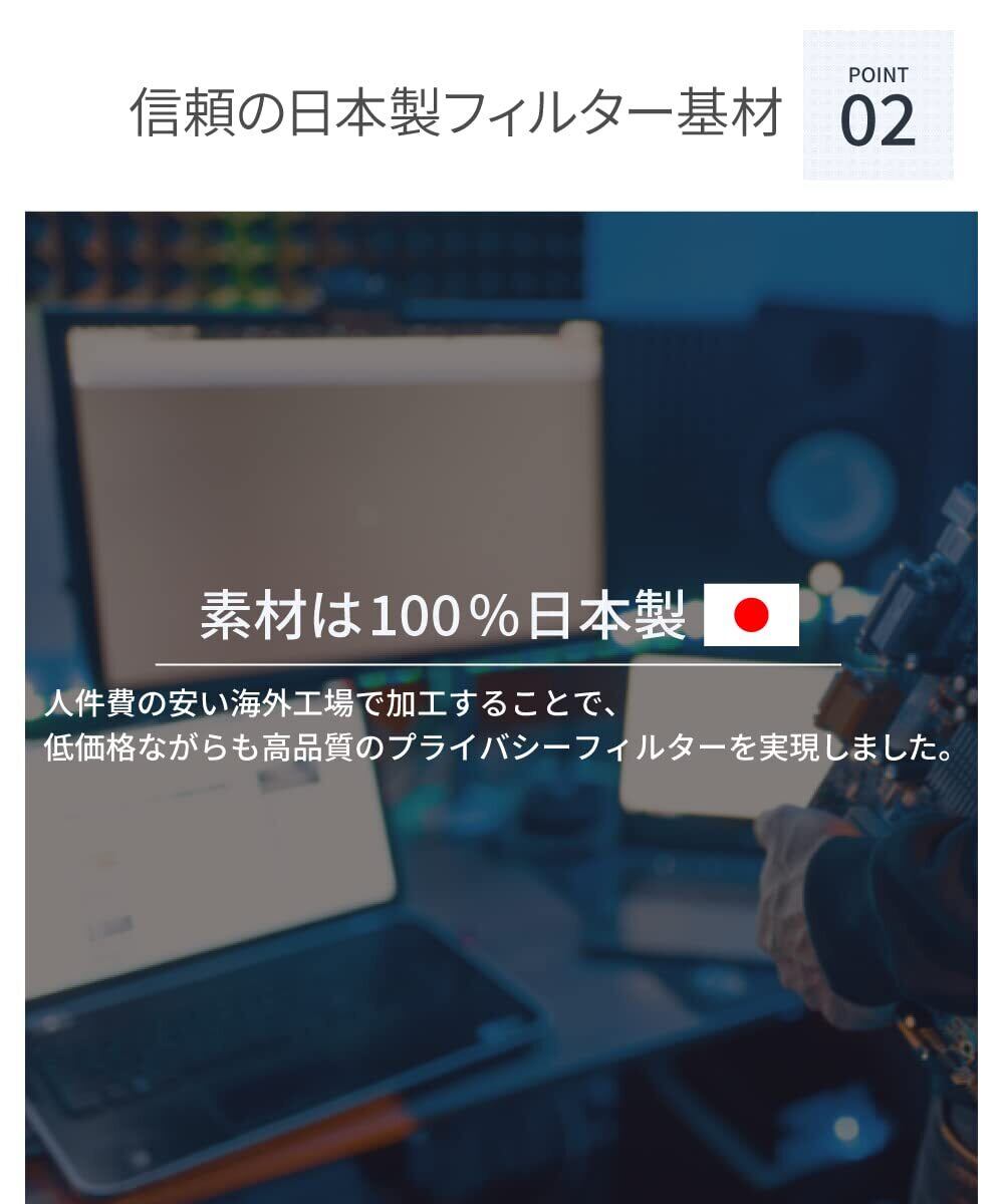 [プライバシー保護] 視野角 60度、正面から見れると画面はクリアでも、隣の席からは真っ暗に映る偏光性を有する「覗き見防止フィルター」です。