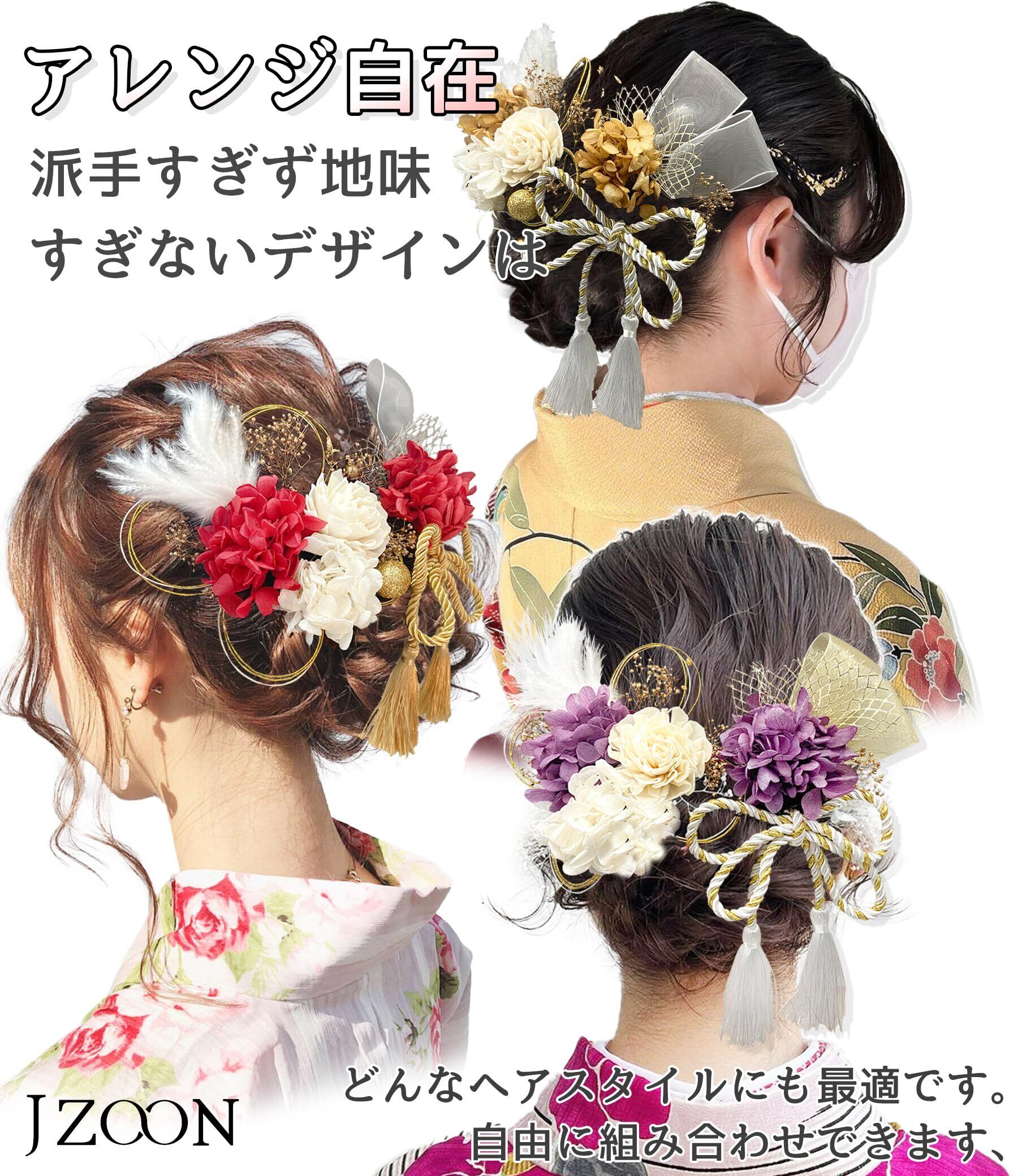 【特別な手作り】一つ一つ丁寧に手作りされており、独特の温かみを感じられます。使用されているドライフラワーや造花は美しさを保ちながら、長持ちするので安心してお使いいただけます。さらに、かすみ草や和玉、リボン、羽の組み合わせが、和装にぴったりな華やかさを演出しています。