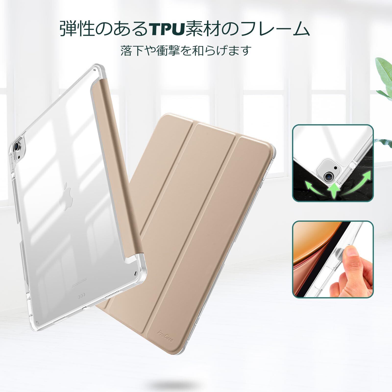 透明のPCバックカバーはアイコンを表示し、iPadを衝撃、指紋、引っかき傷から保護します。内蔵したマグネットにより、オートスリープ/ウェイクに対応します。
