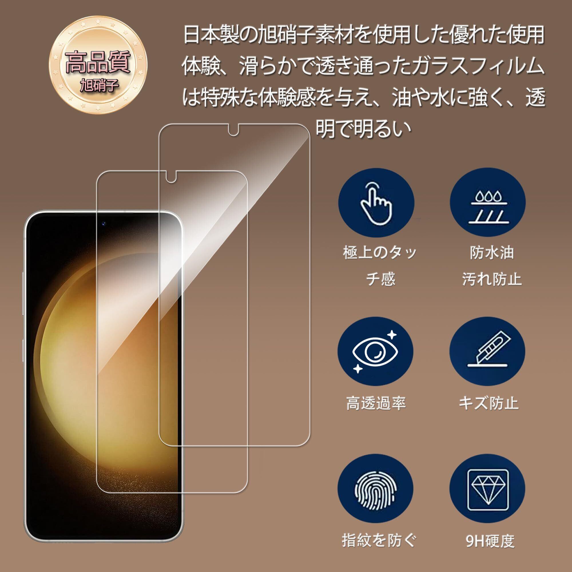 【2+2枚セット】ガイド枠付き KPNS 日本素材製 強化ガラス Galaxy S23 SC-51D SCG19 用 ガラスフィルム カメラフィルム カバー ギャラクシーs23 保護フィルム | hananoki
