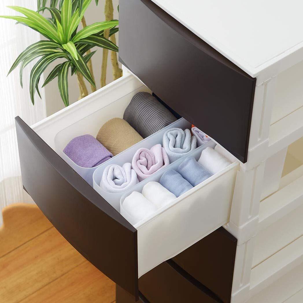 収納ケースの中でバラバラにになりがちな小物をインケースで分類して収納することで、見た目もすっきり、使いやすくなります。