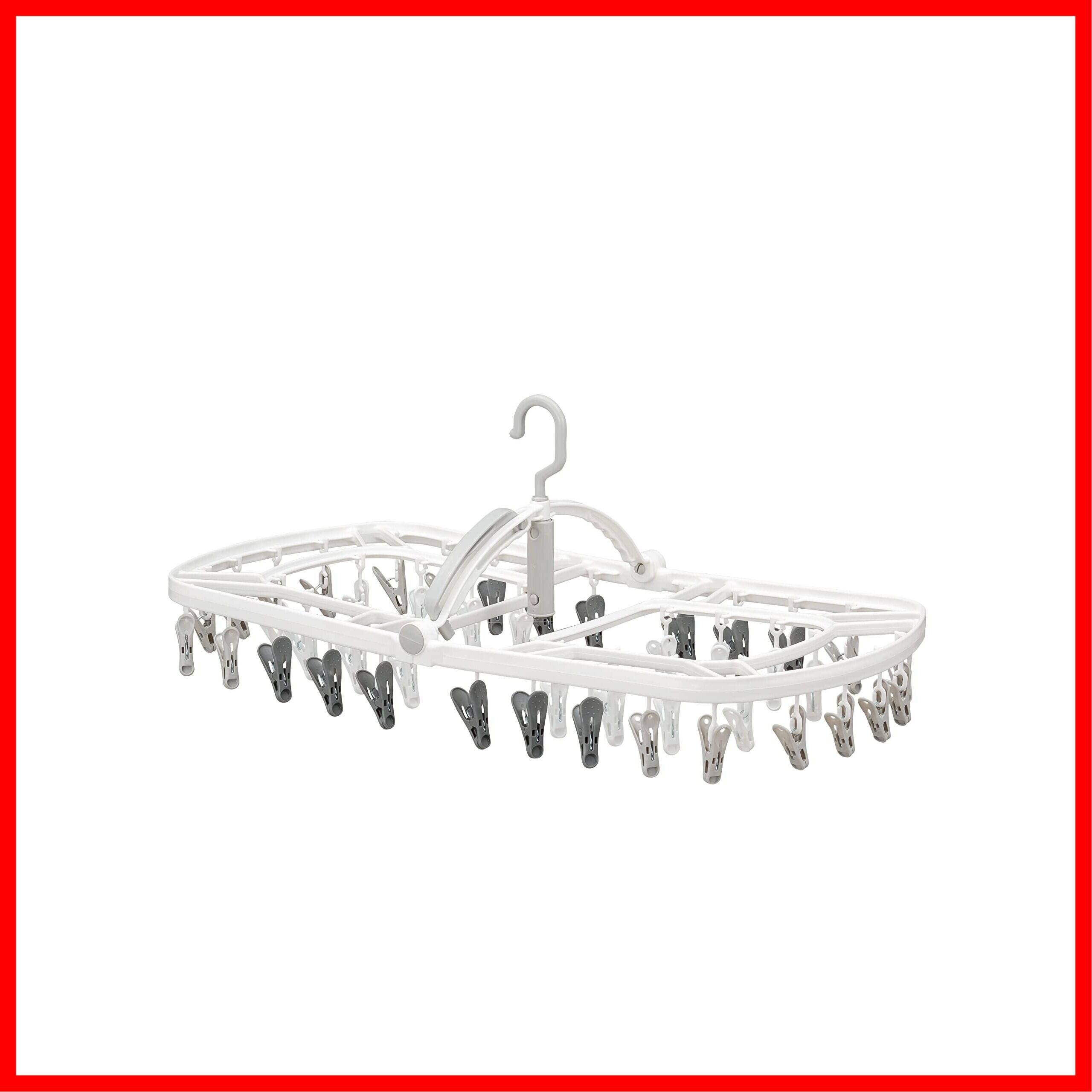 小さすぎずにまとめ干しにもちょうどいい「ランドリーハンガー44ピンチ」ドアなどに引っ掛けられる部屋干しフックが付いているので、日中外出が多い方にもぴったりです。