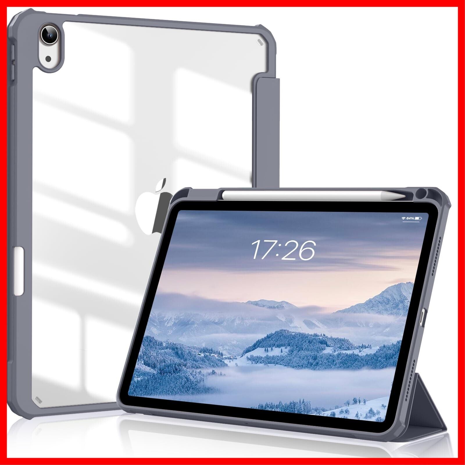 iPad 11世代 ケース A16 (2025) iPad 第11/10世代 10.9インチ (2022) 透明バックカバー ペンシルホルダー付き 三つ折りスタンド Touch IDとオートスリープ機能対応 軽量 薄型 傷つけ防止 PU合成レザー TPU グレーブルー