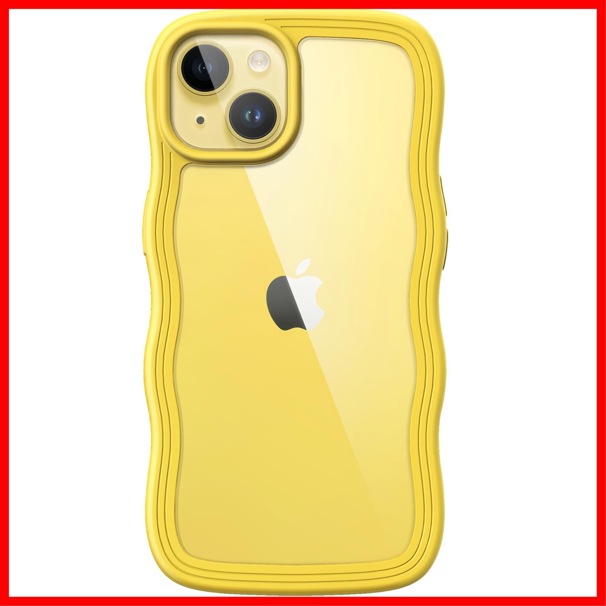 JETech iPhone 14 Plus 6.7インチ用 かわいい ケース 波状フレーム うねうね 耐衝撃 スマホカバー 女性用 女子向け クリア ハードPCバック (イエロー) | hananoki